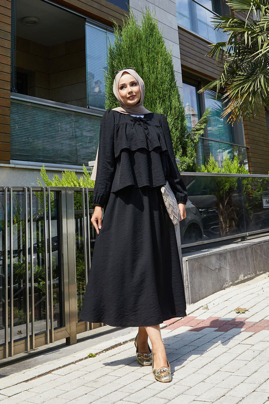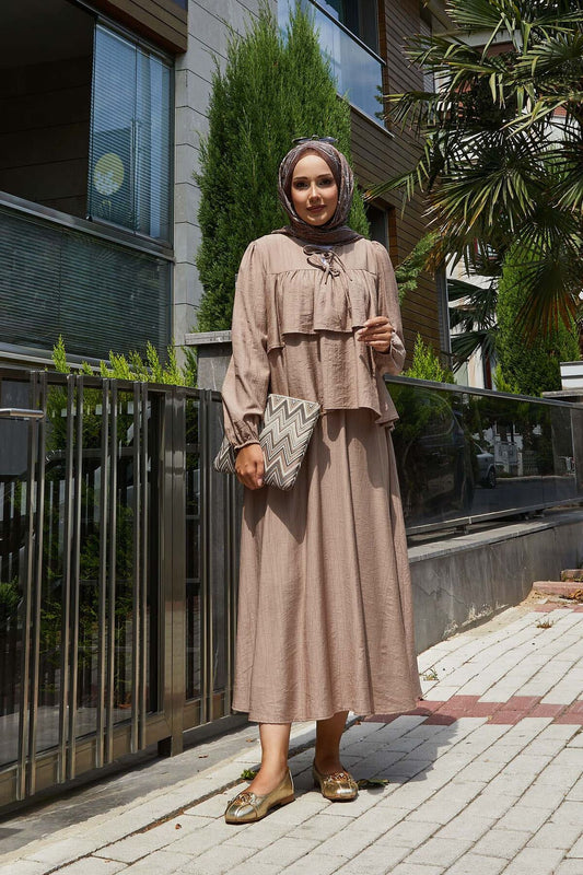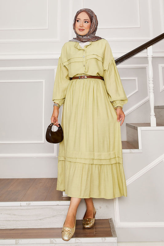 Balon Kol Gömlek Etek İkili Takım Yağ yeşil