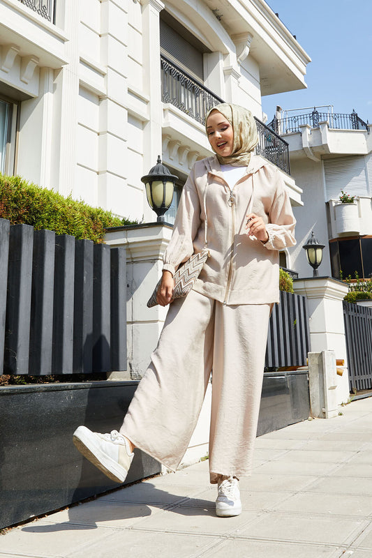 Fermuar Detaylı Kapüşonlu İkili Takım taş