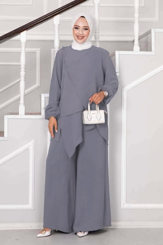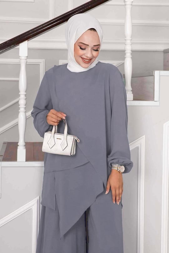 Ürün tunik ve pantolon olmak üzere iki parçadan oluşmaktadır. Tunik yakalıdır. Pantolon beli lastikli olup oldukça rahat bir takımdır.