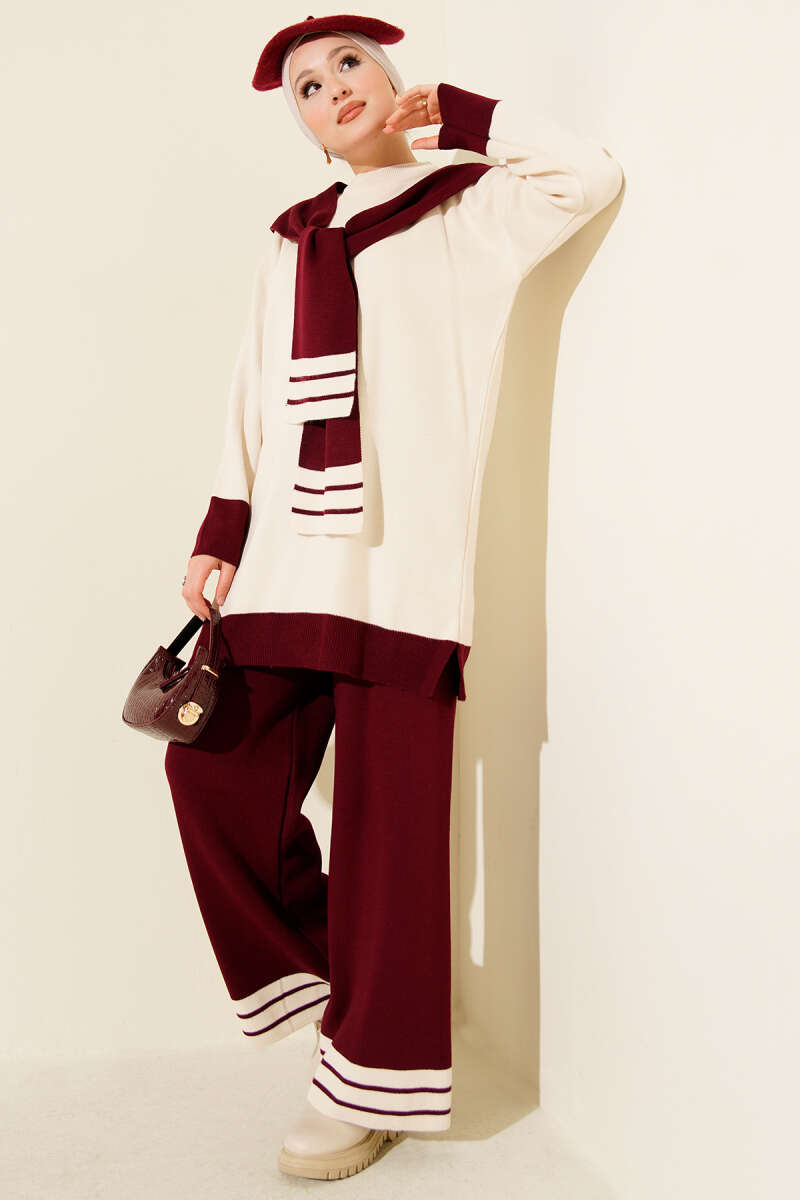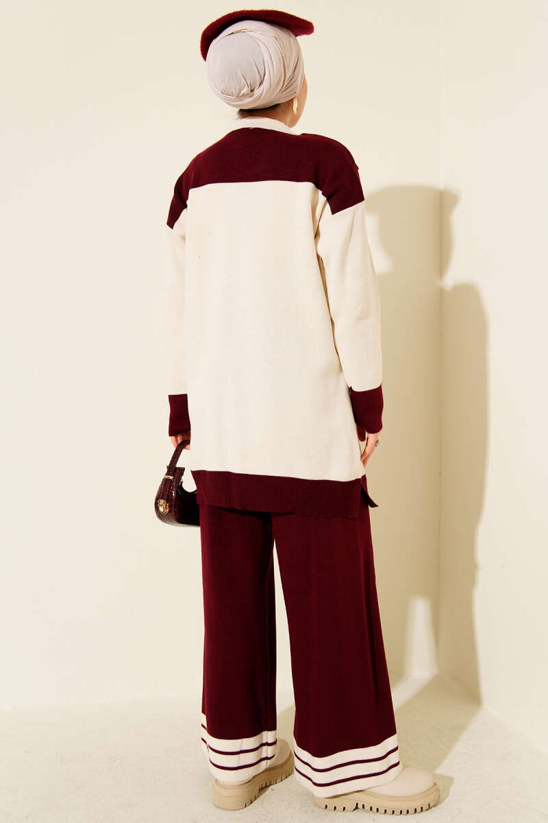Ensemble tricoté double avec détail de bande à col montant bordeaux