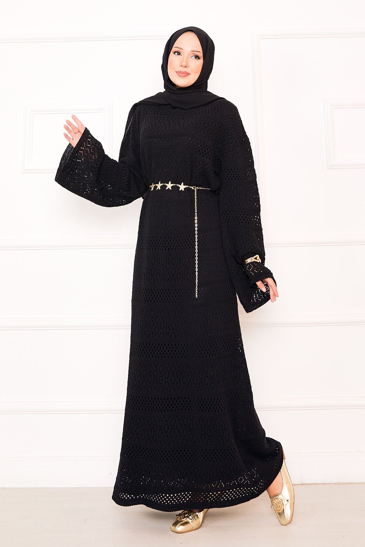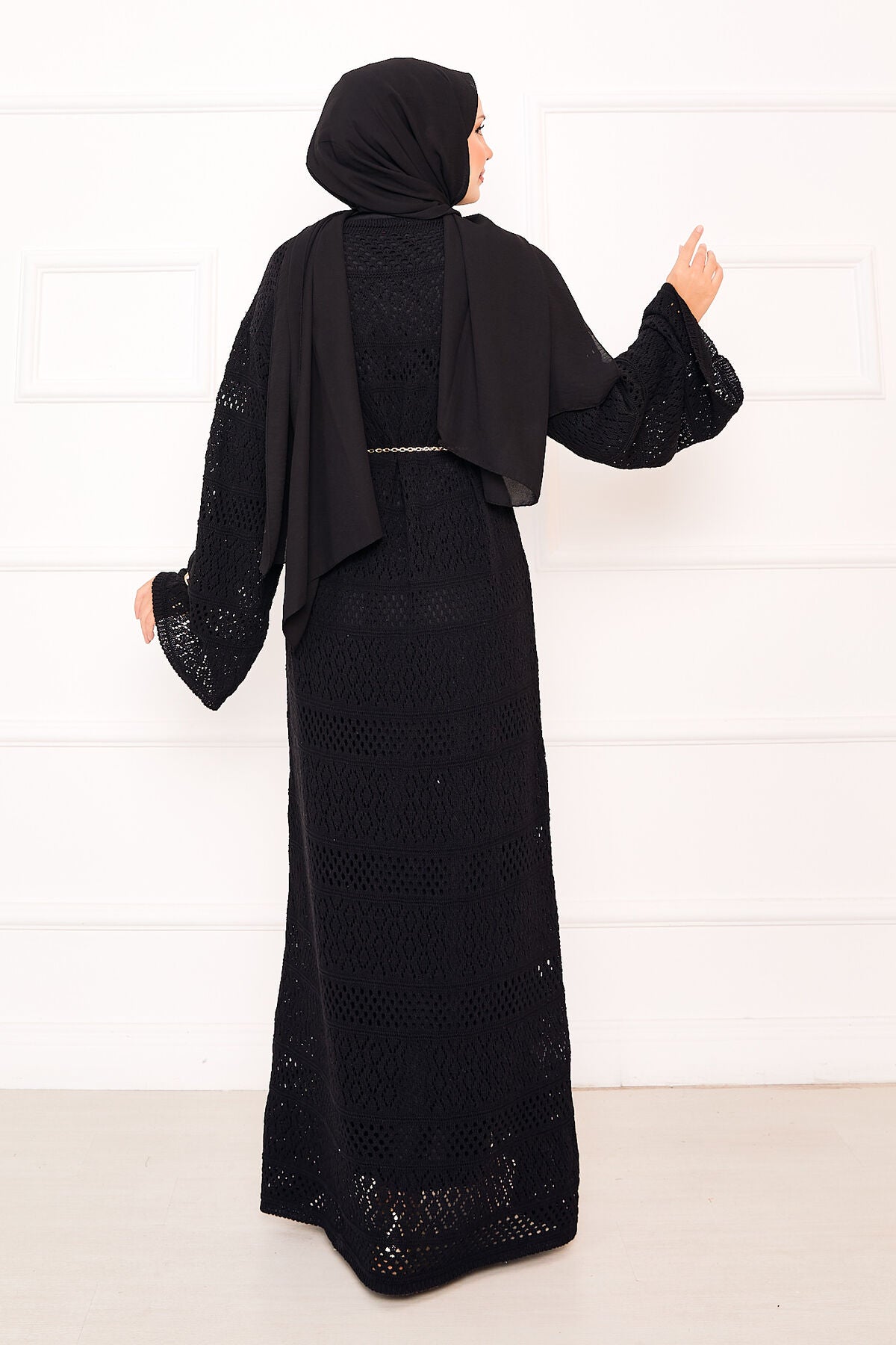 Ürün mevsimliktir. Boydan ajur file dataylı triko elbise salaş modeldir. ( Astarsızdır.) İçlik ile kombinlenir. Kemer ürüne dahil değildir.