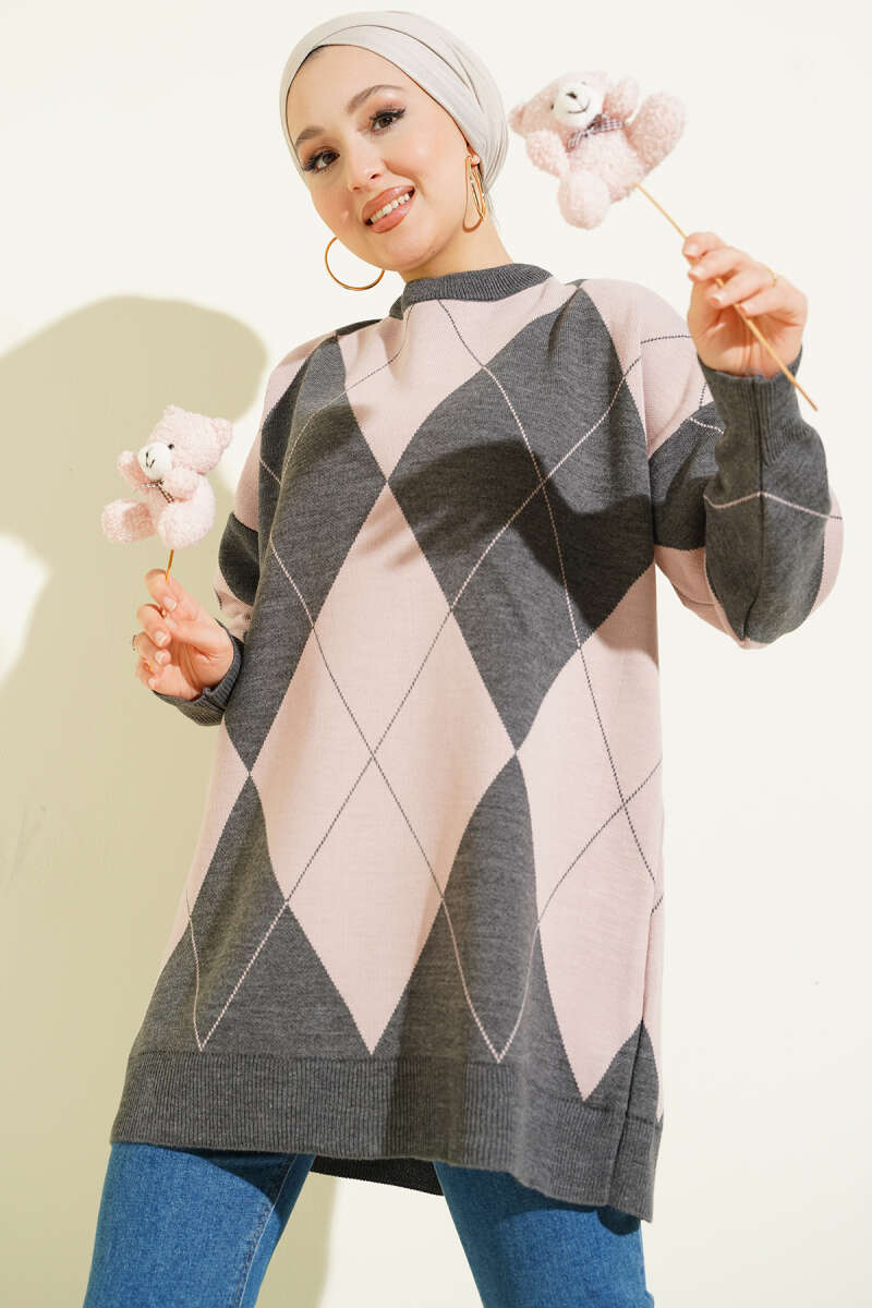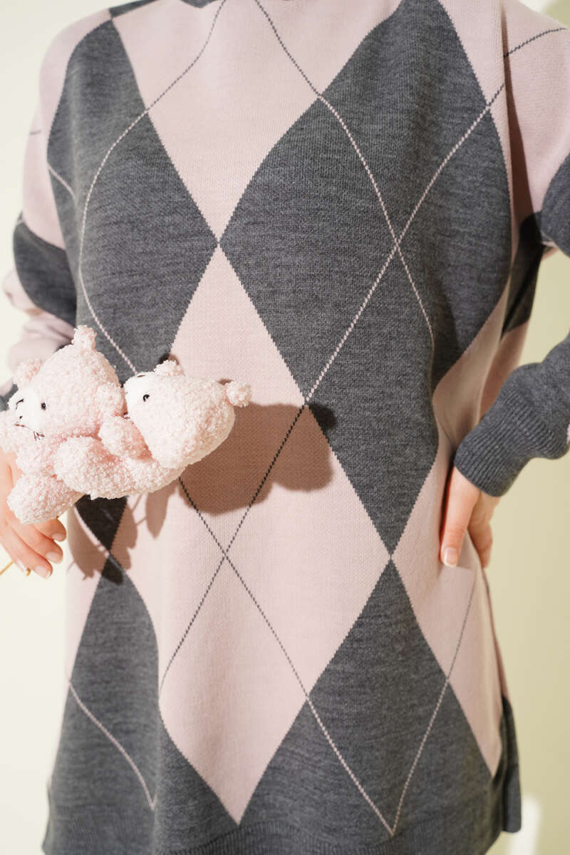 Baklava Desenli Basic Triko Tunik Füme