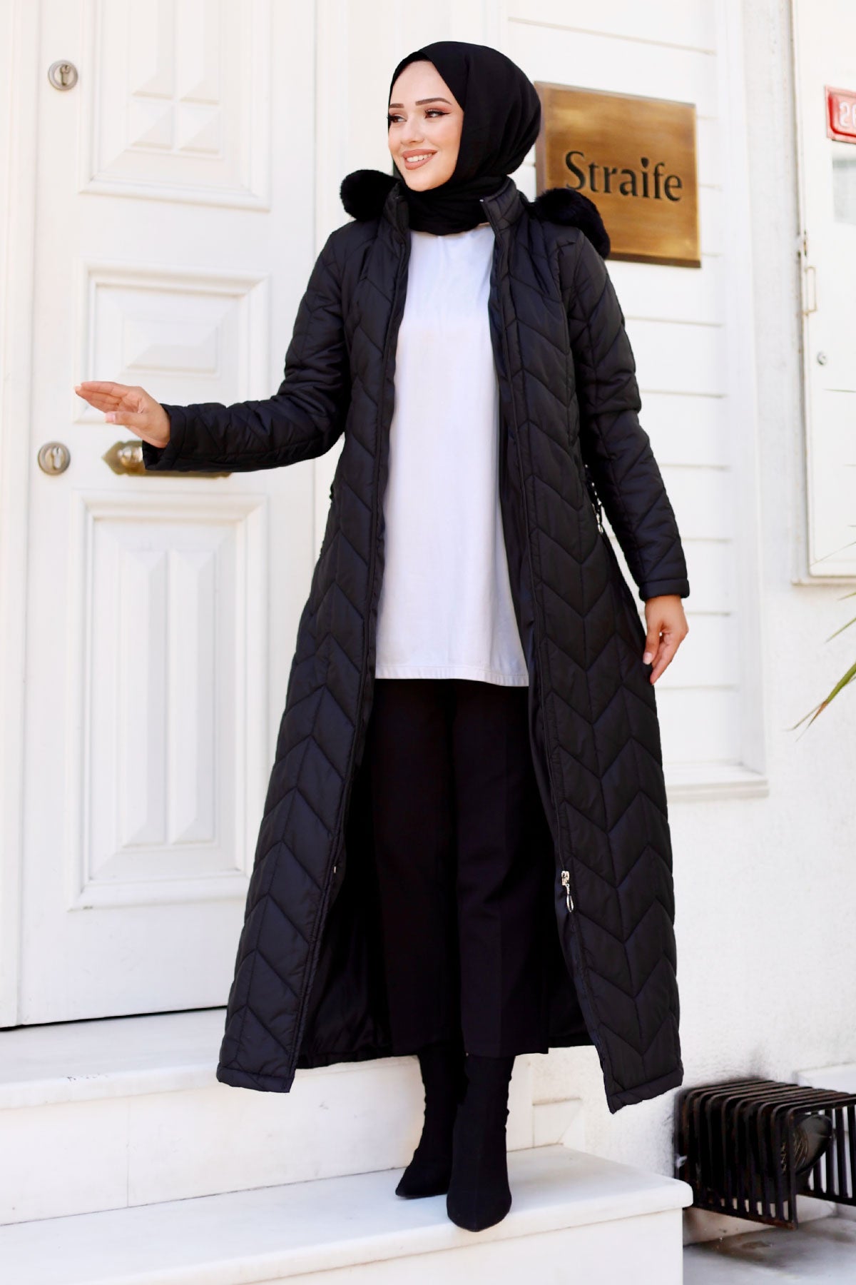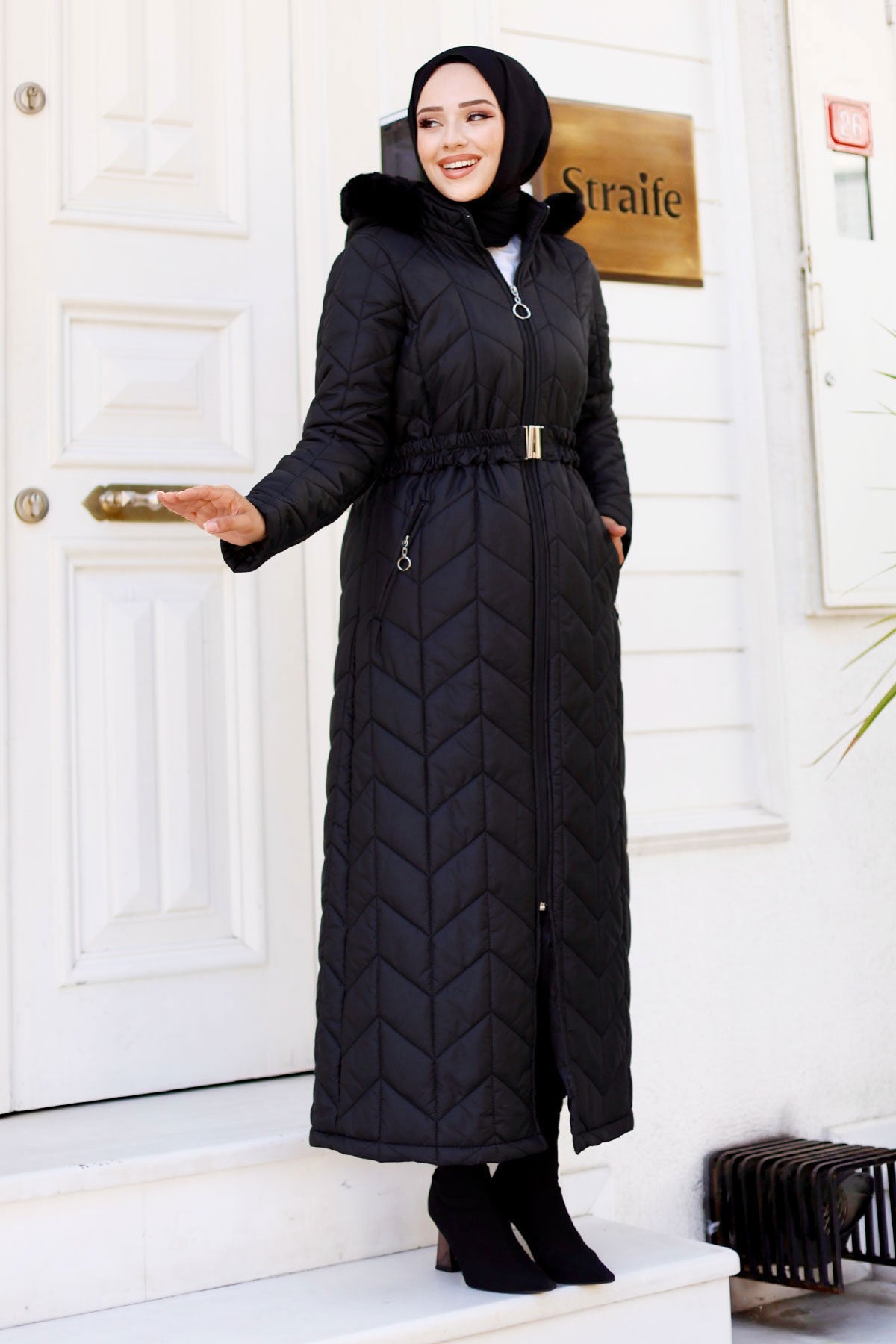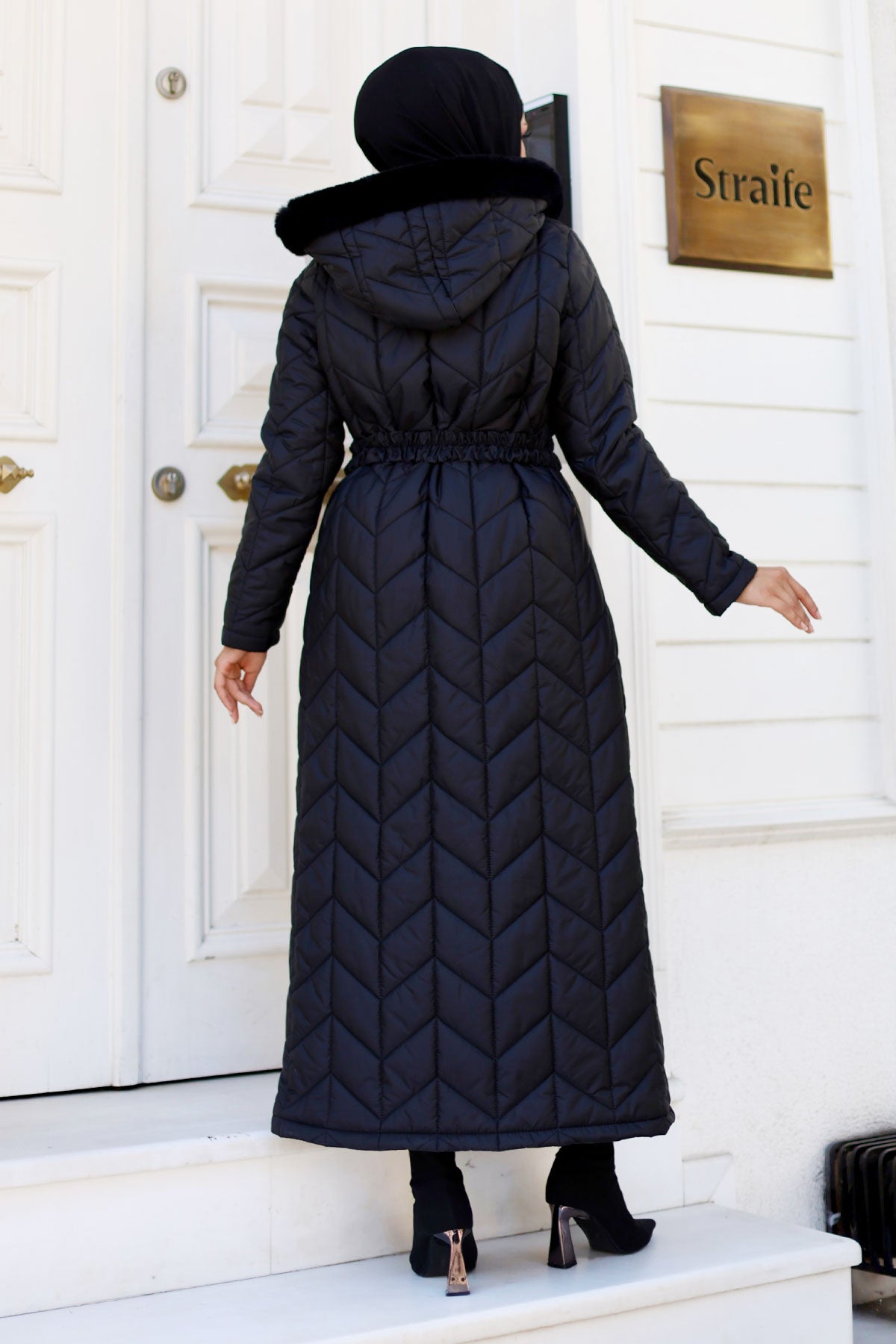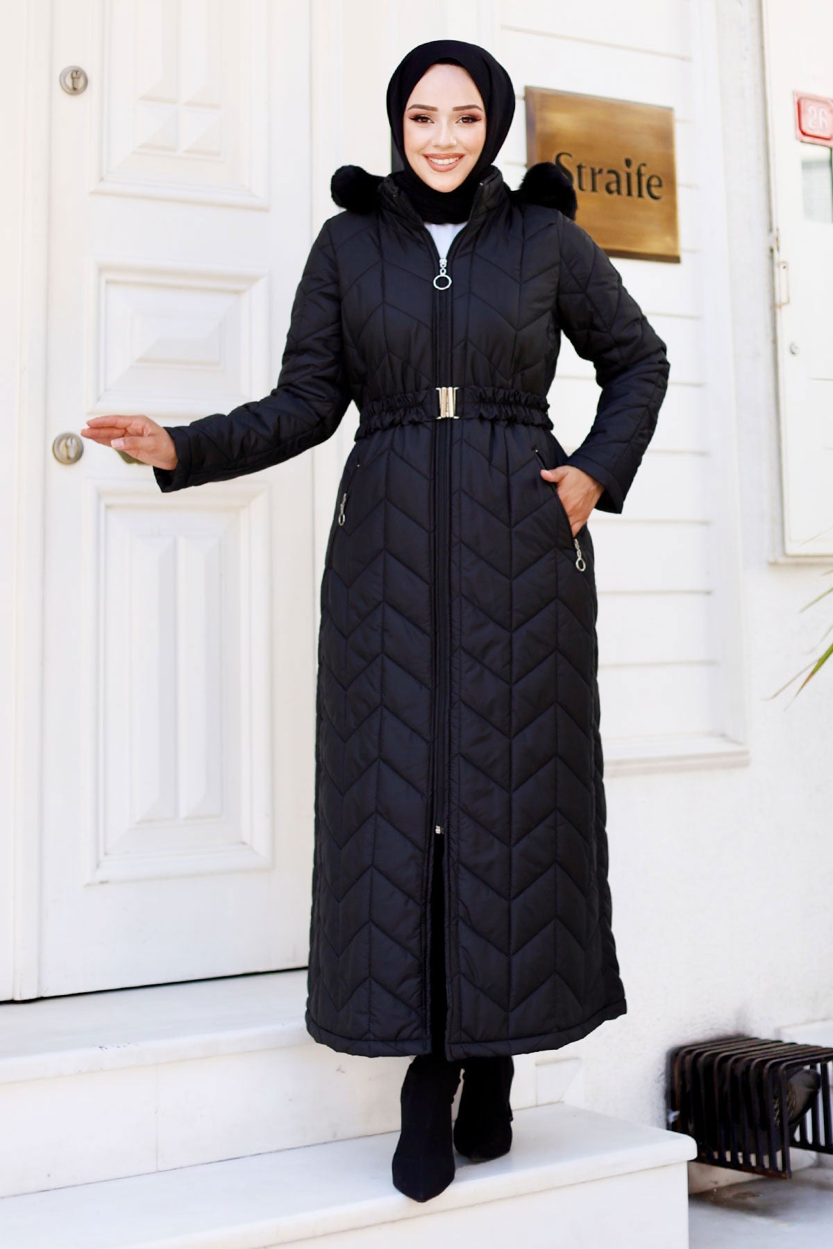 Kemer Detaylı Kapitone Mont Siyah