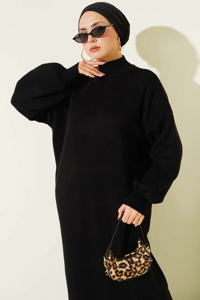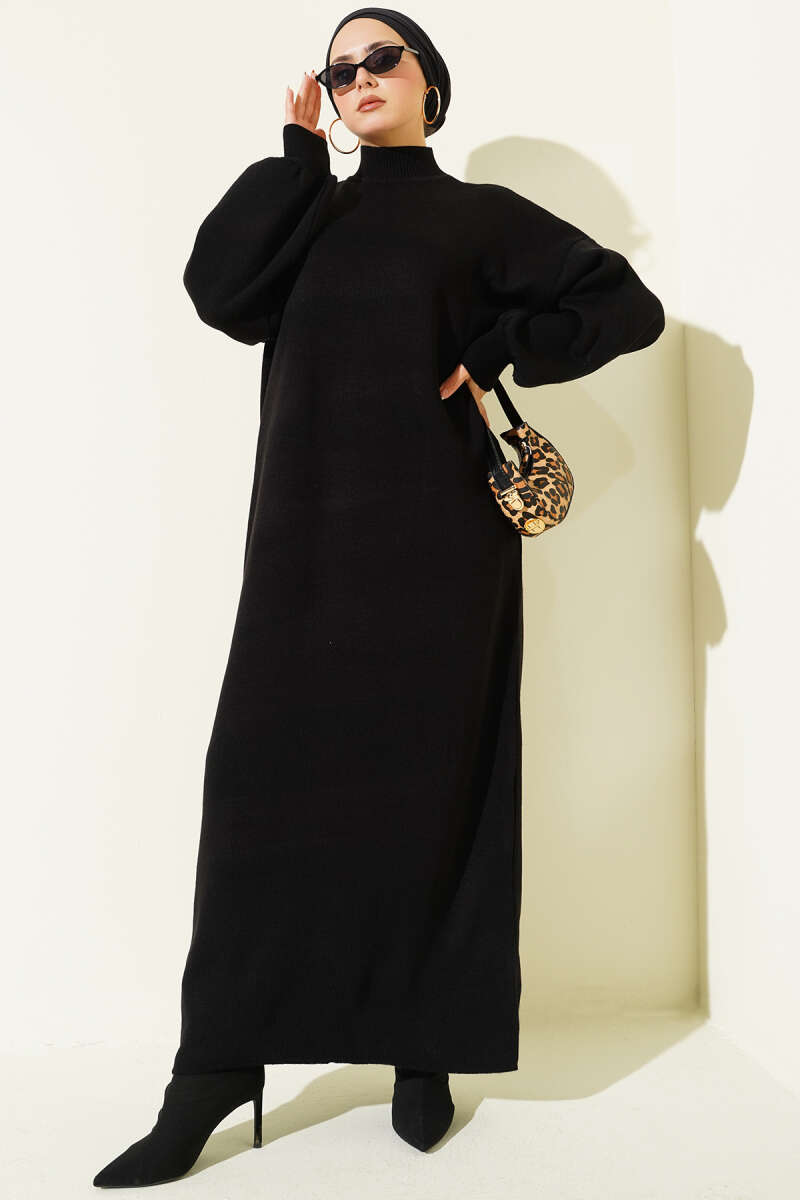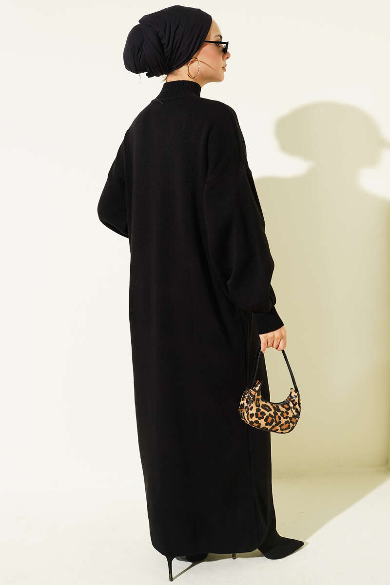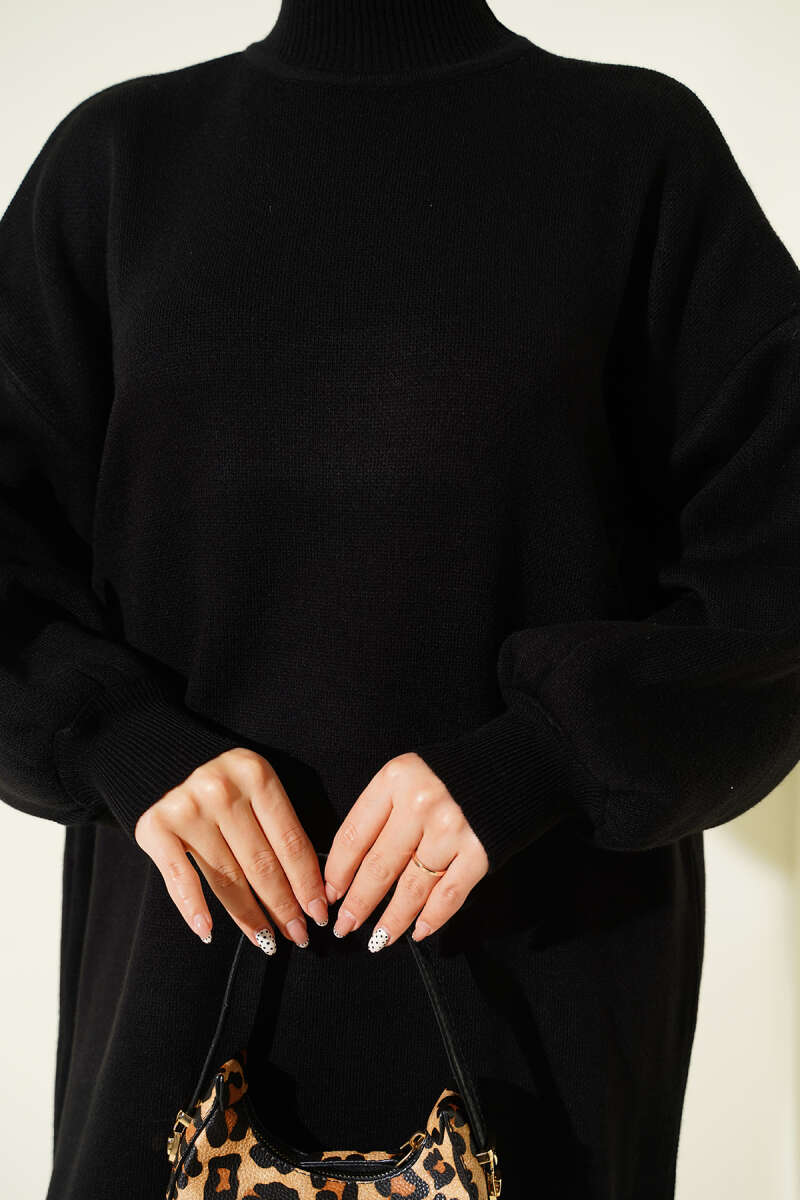 Balıkçı Yaka Düz Triko Elbise siyah