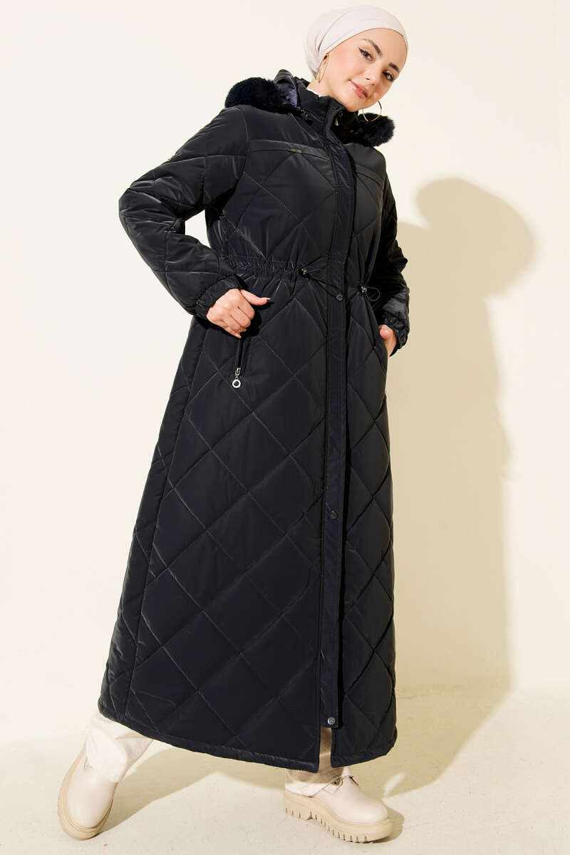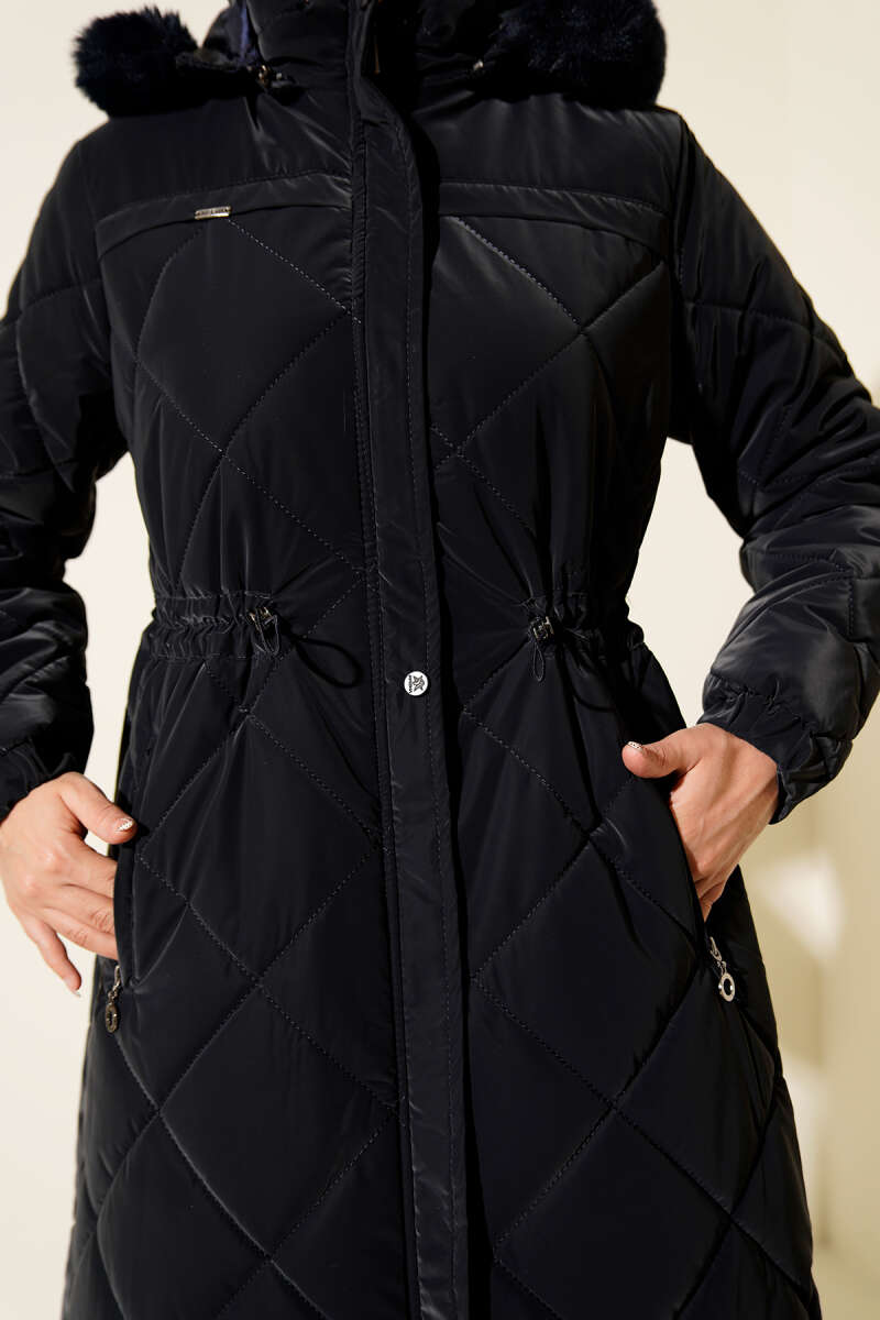 Bel Tünelli Kapüşonlu Kapitone Mont lacivert