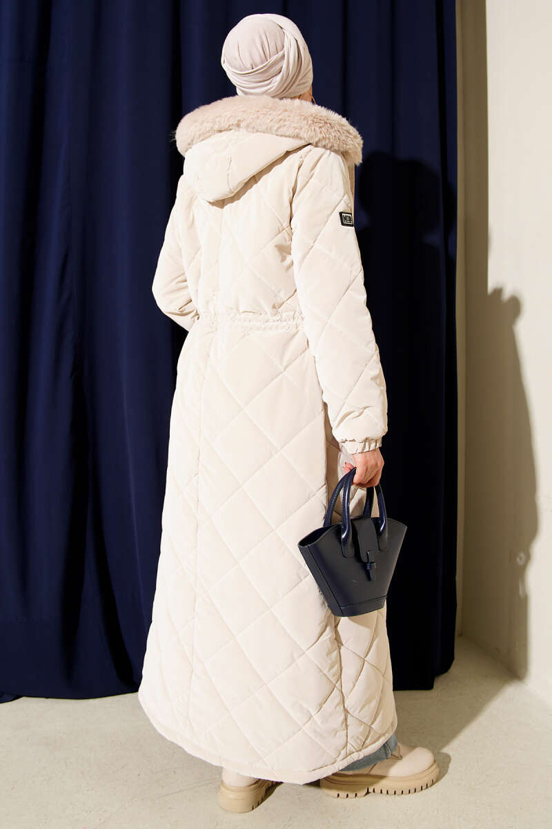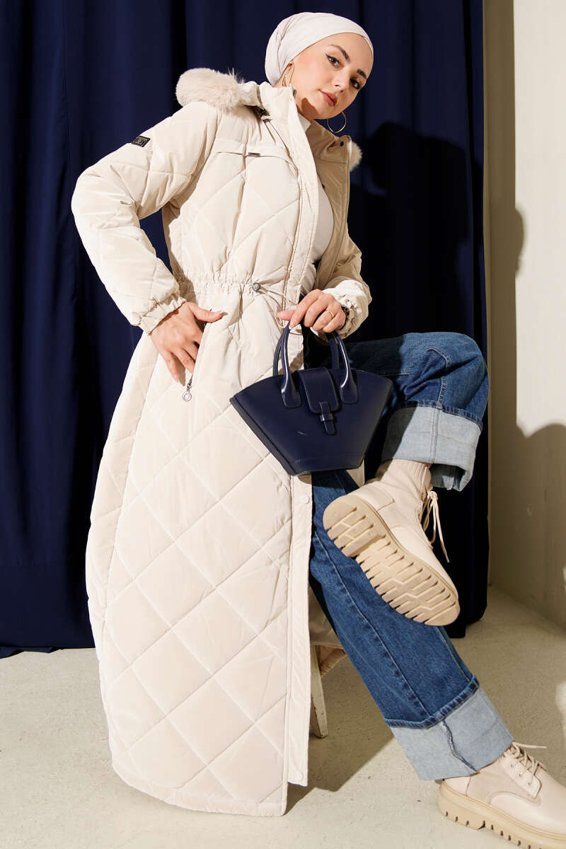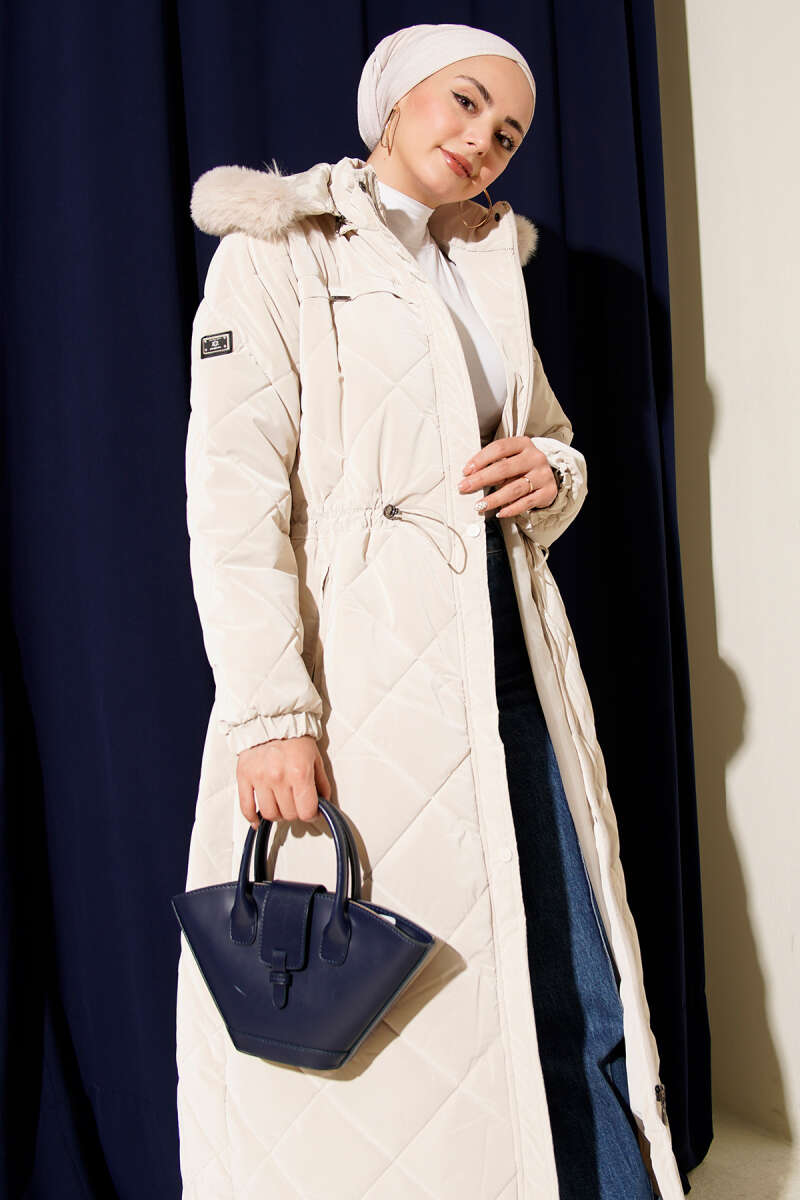 Bel Tünelli Kapüşonlu Kapitone Mont taş