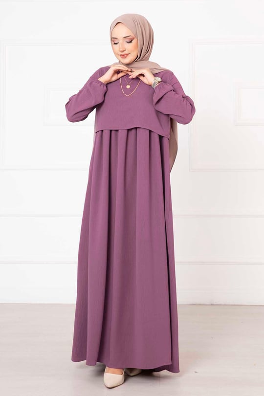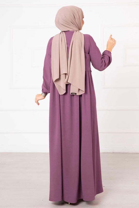 Ürün mevsimliktir. Elbise yuvarlak yakalıdır, kol uçları lastiklidir ve bolero elbiseye dikilmiştir, çıkmaz.