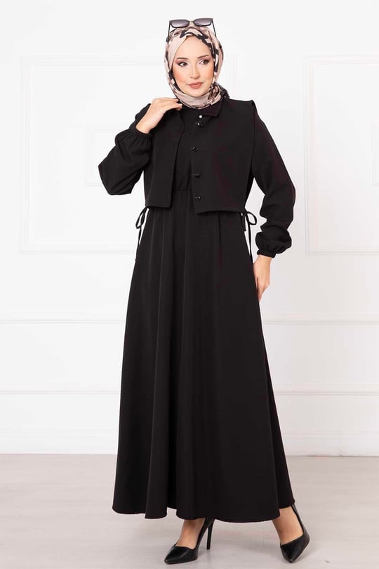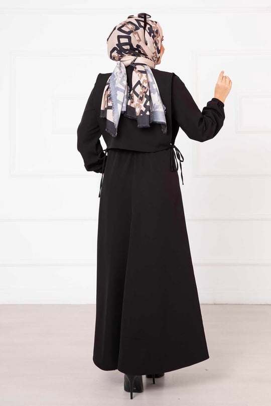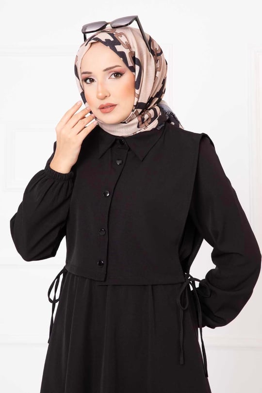 Ürün mevsimliktir. Elbise bisiklet yaka sırtında damla düğmesi bulunmaktadır beli büzgülüdür. Crop aktif düğmelidir ve yanları bağlama detaylıdır