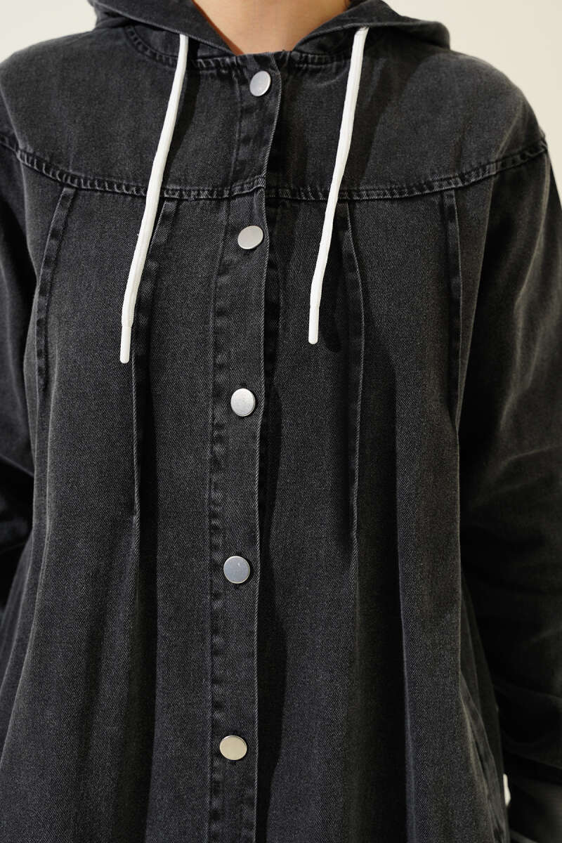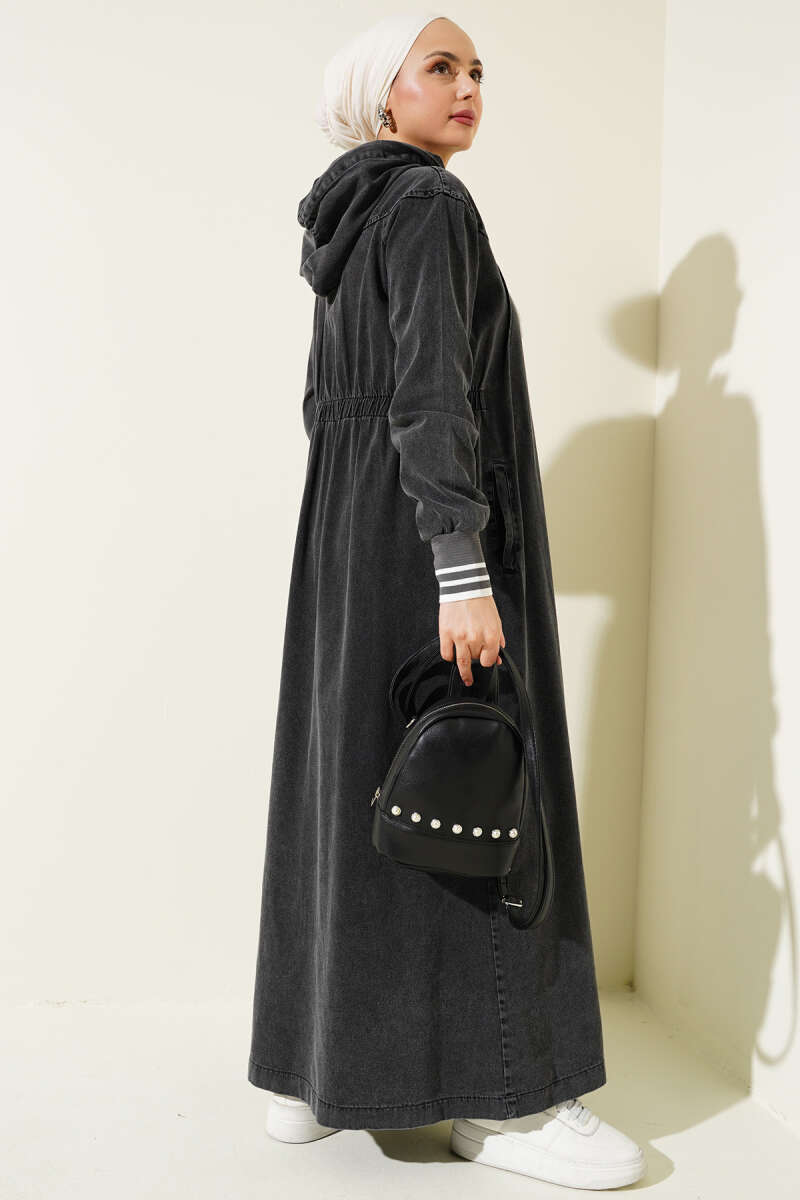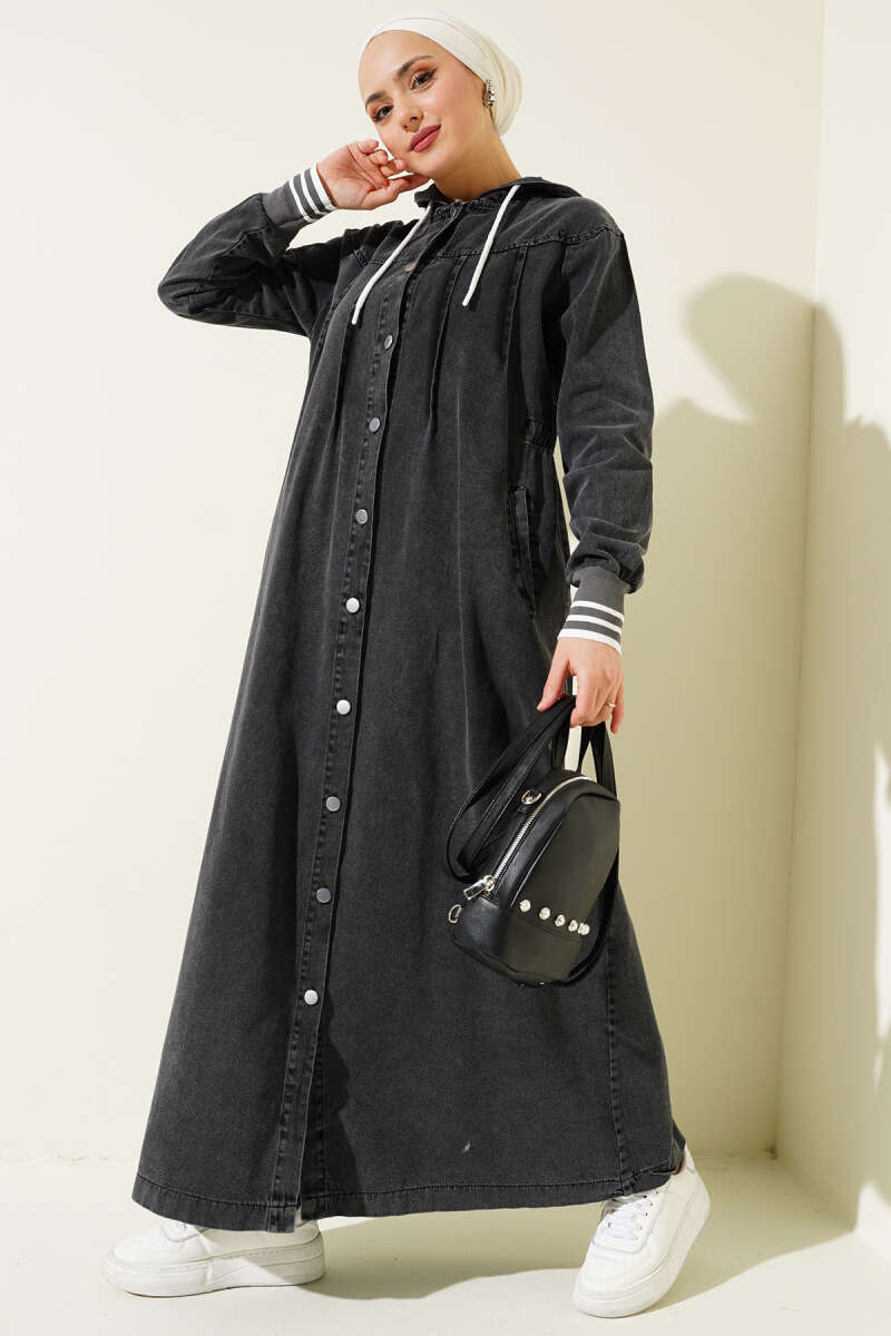 Boydan Düğmeli Kot Elbise kap Füme