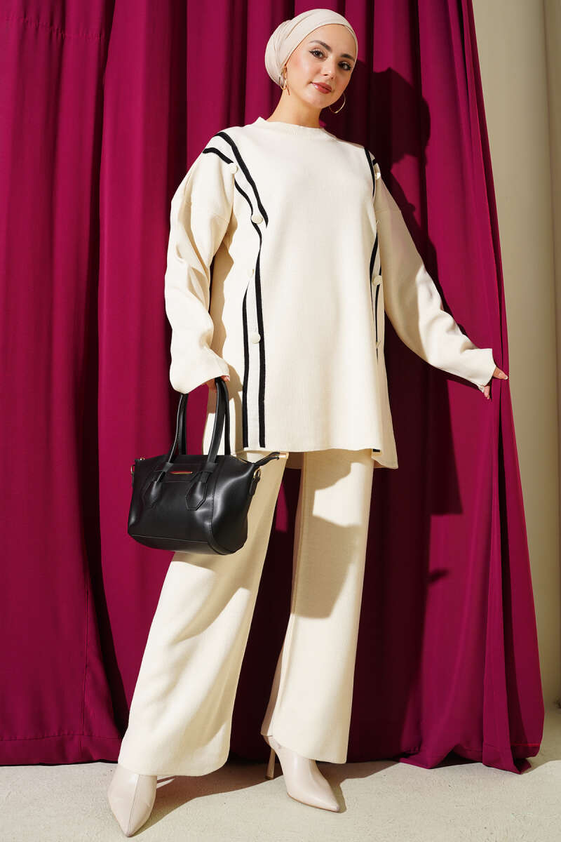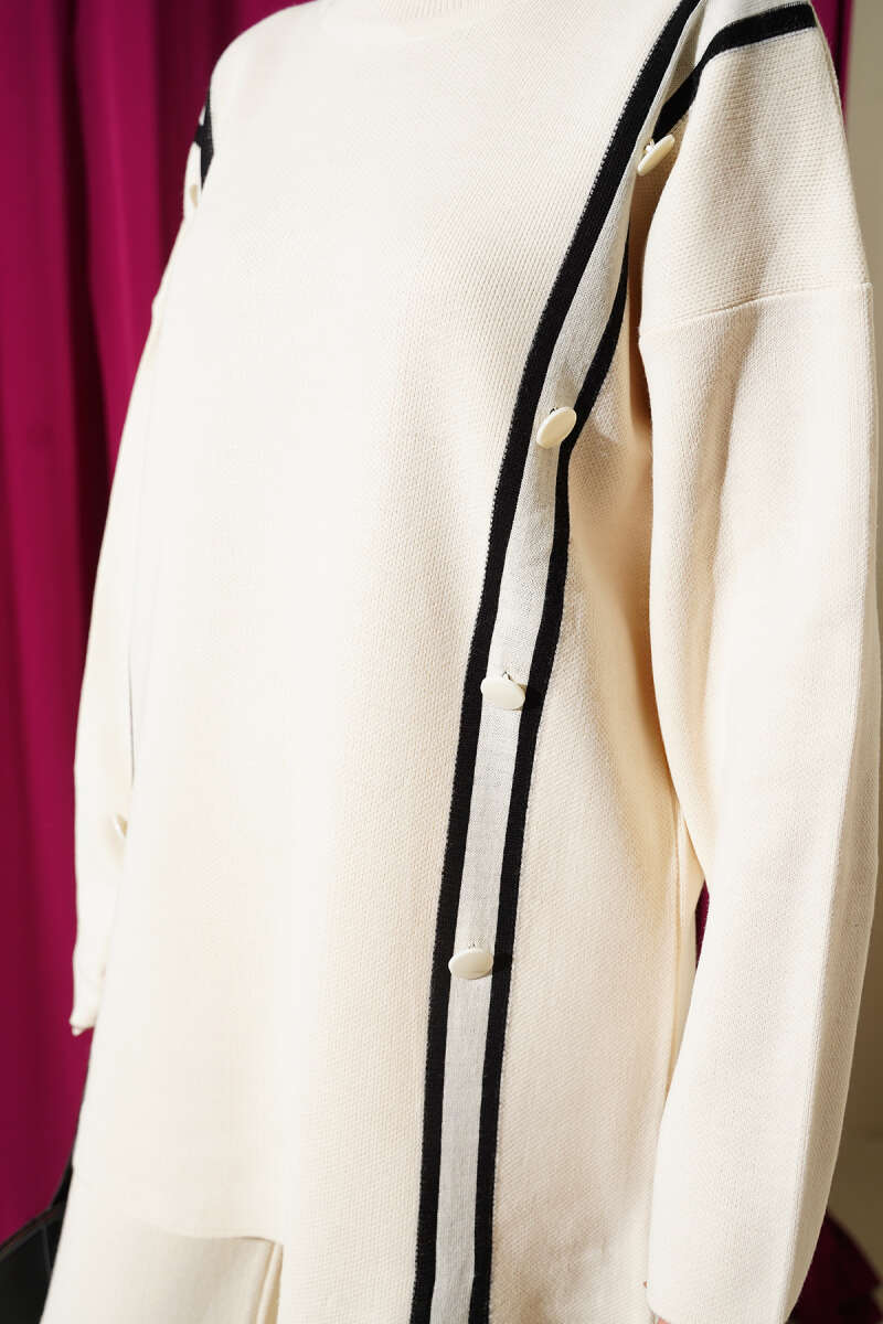Düğmeli Triko İkili Takım ekru