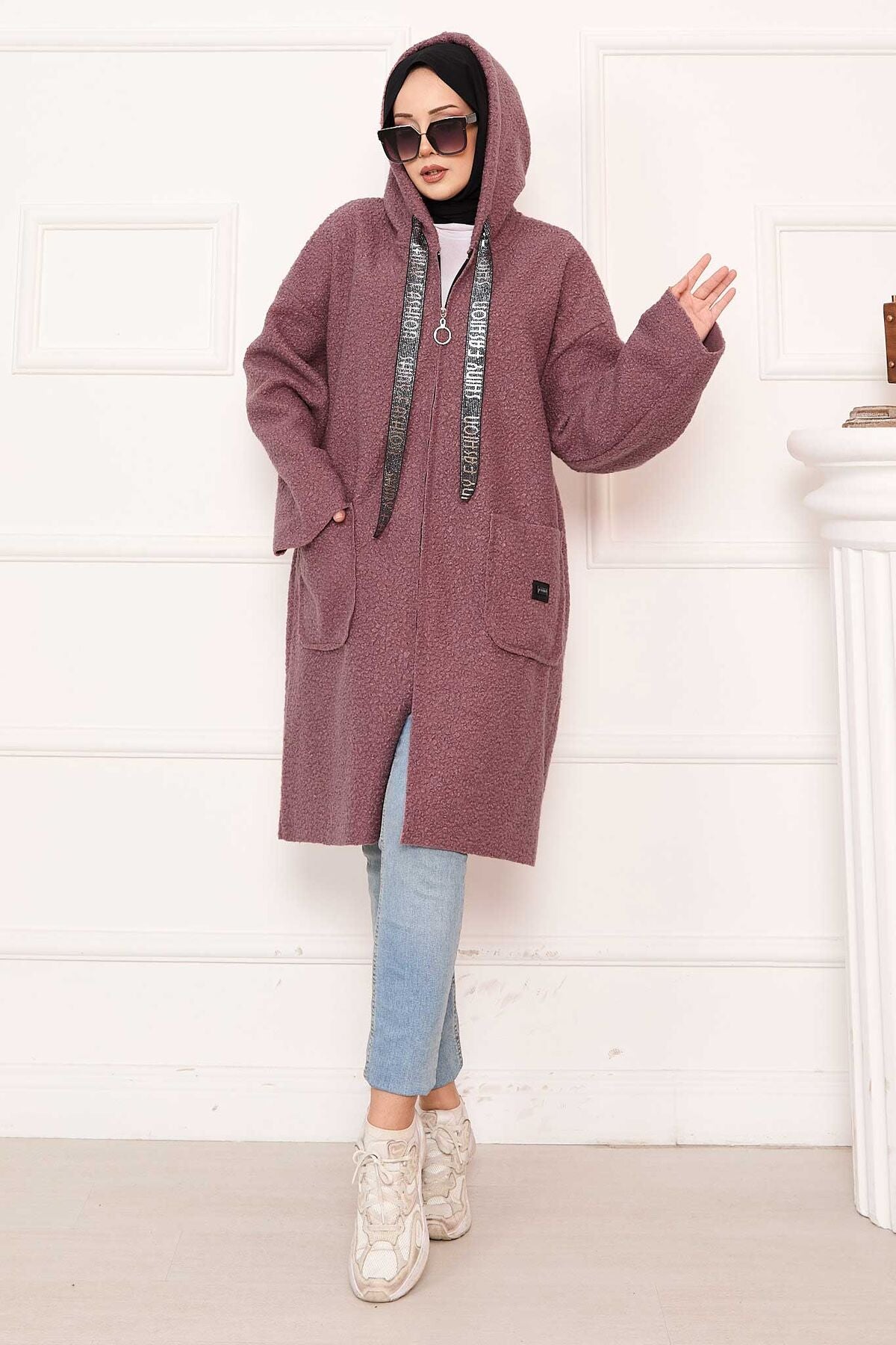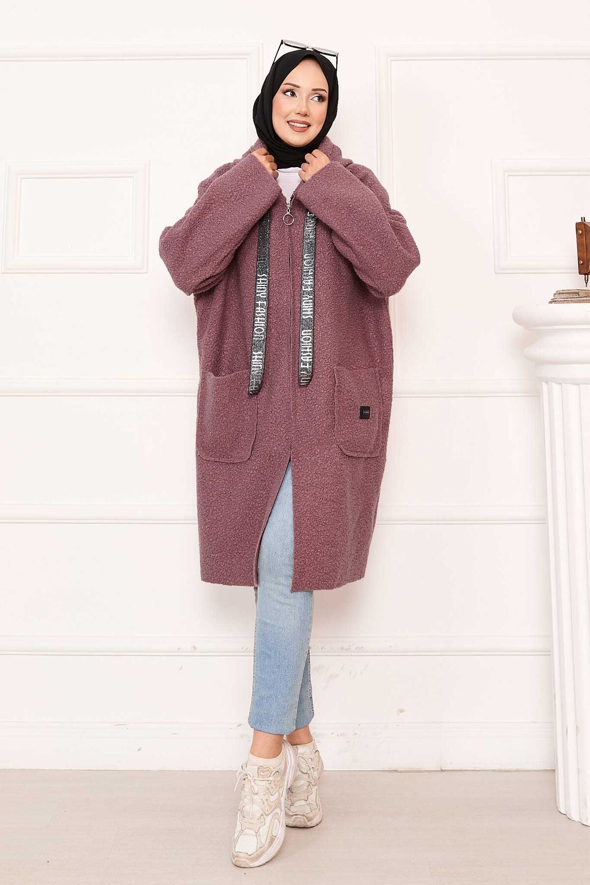 Ürün sonbahar-kışlıktır. Yeni sezon fermuarlı kapüşonlu ve simli şerit detaylıdır. Sağ ve sol taraf olmka üzere ön ceplidir.