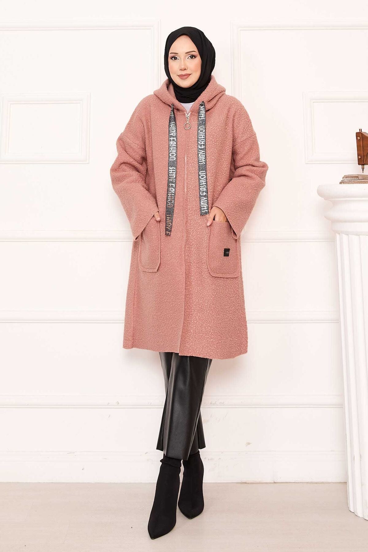 Ürün sonbahar-kışlıktır. Yeni sezon fermuarlı kapüşonlu ve simli şerit detaylıdır. Sağ ve sol taraf olmka üzere ön ceplidir.