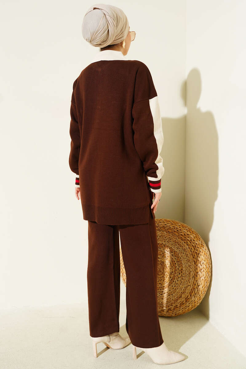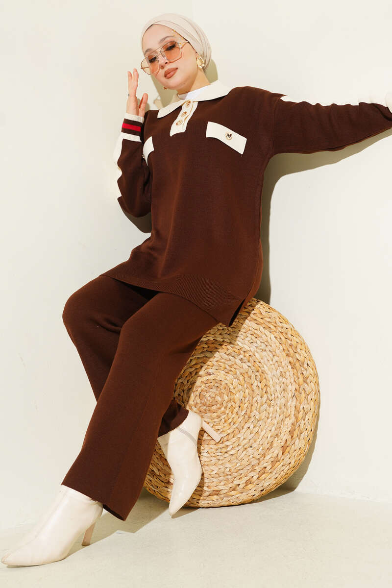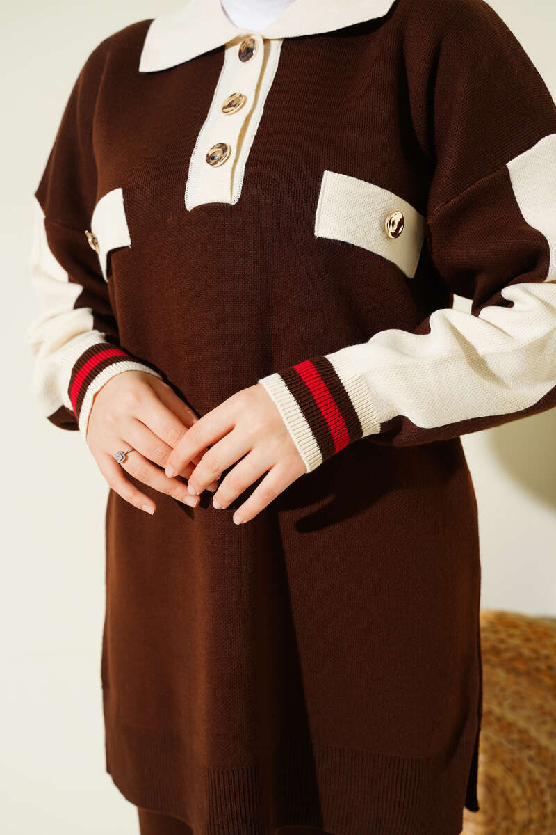 Gömlek Yaka Düğmeli Triko İkili Takım kahve