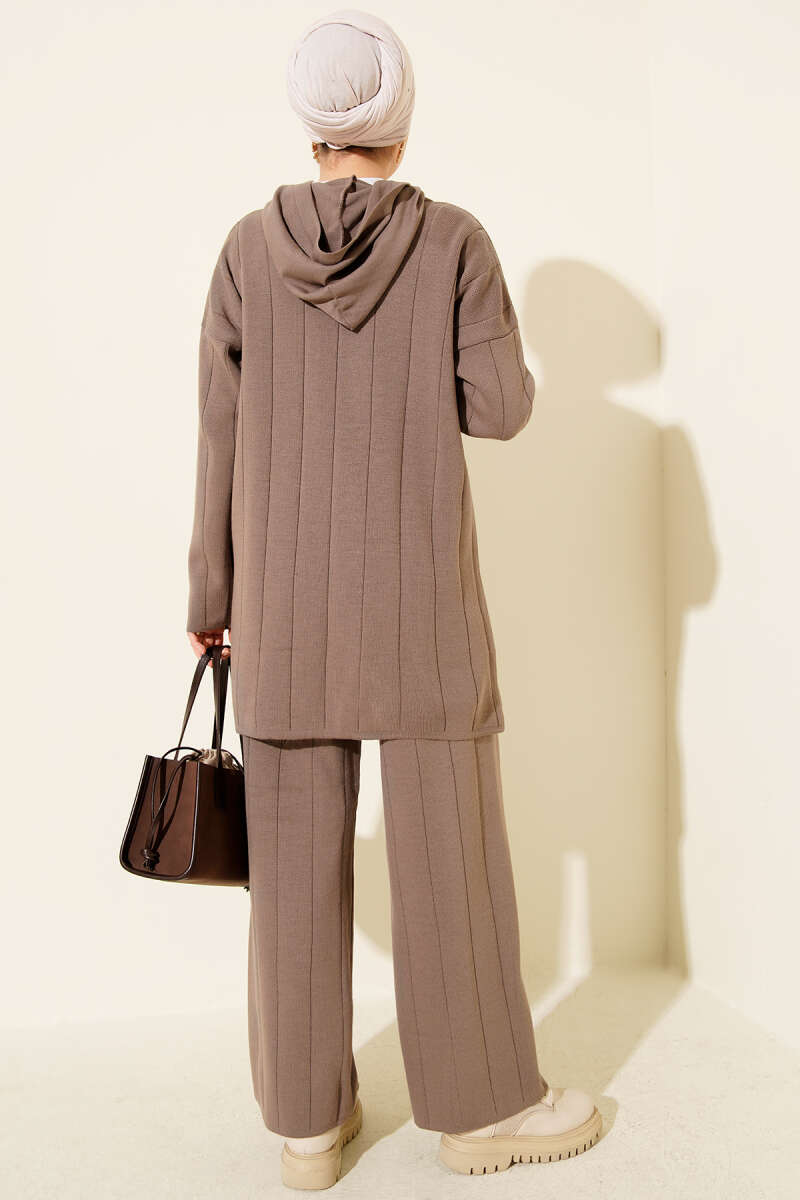 Kapüşonlu Fermuarlı Triko İkili Takım vizon