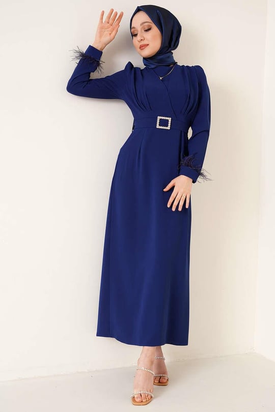 Göz alıcı şık tasarımıyla yeni sezon elbisemiz sizlerle. Elbisemizin kolları tüylüdür. Kemer tokası ve kuşağı bulunmaktadır. Arkasında fermuar bulunmaktadır. Her ortamda rahatlıkla giyebilirsiniz. Farklı renk seçenekleri mevcuttur.