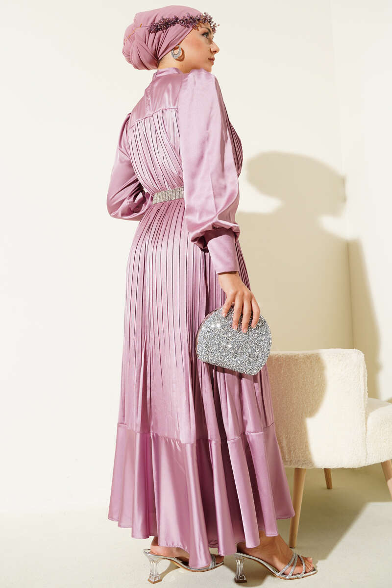 Kol Fermuarlı Piliseli Abiye Elbise pudra