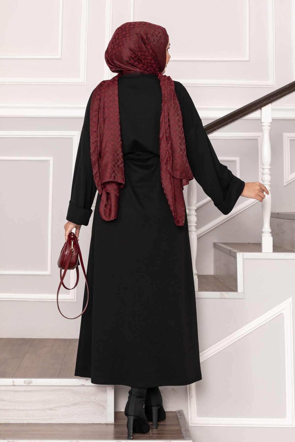 Ürün Sonbahar & Kış modasıdır. Kolu katlana bilir seyyar ip kuşaklı tam boy tesettür elbise"