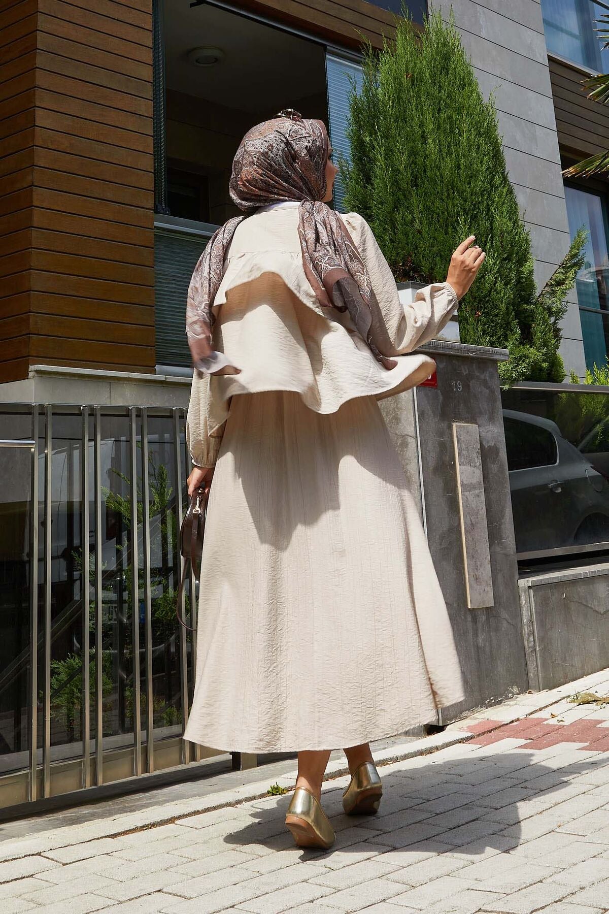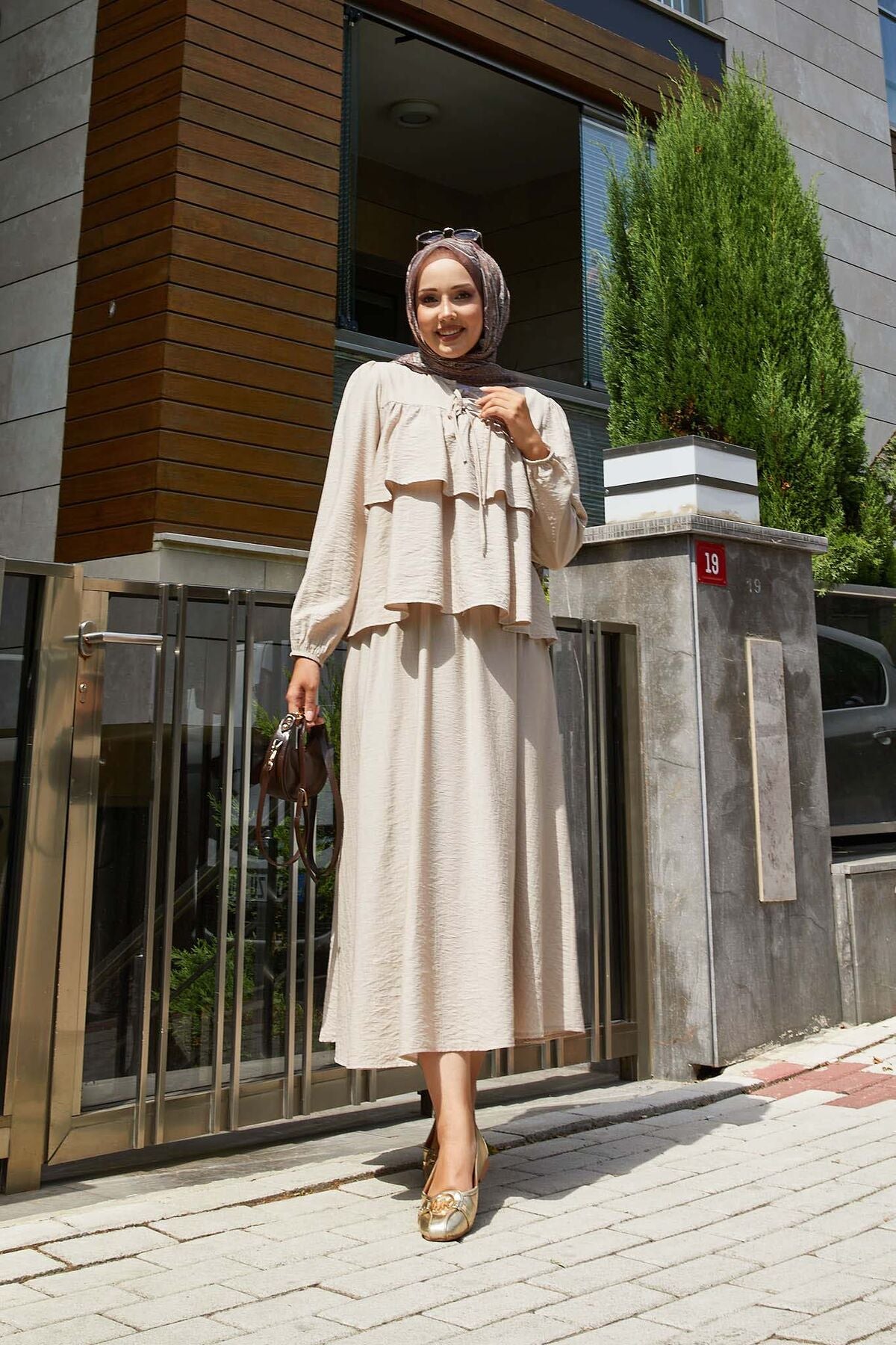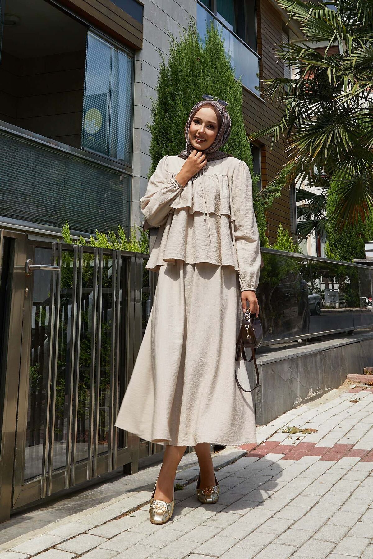 Volan Detaylı Etekli İkili Takım bej