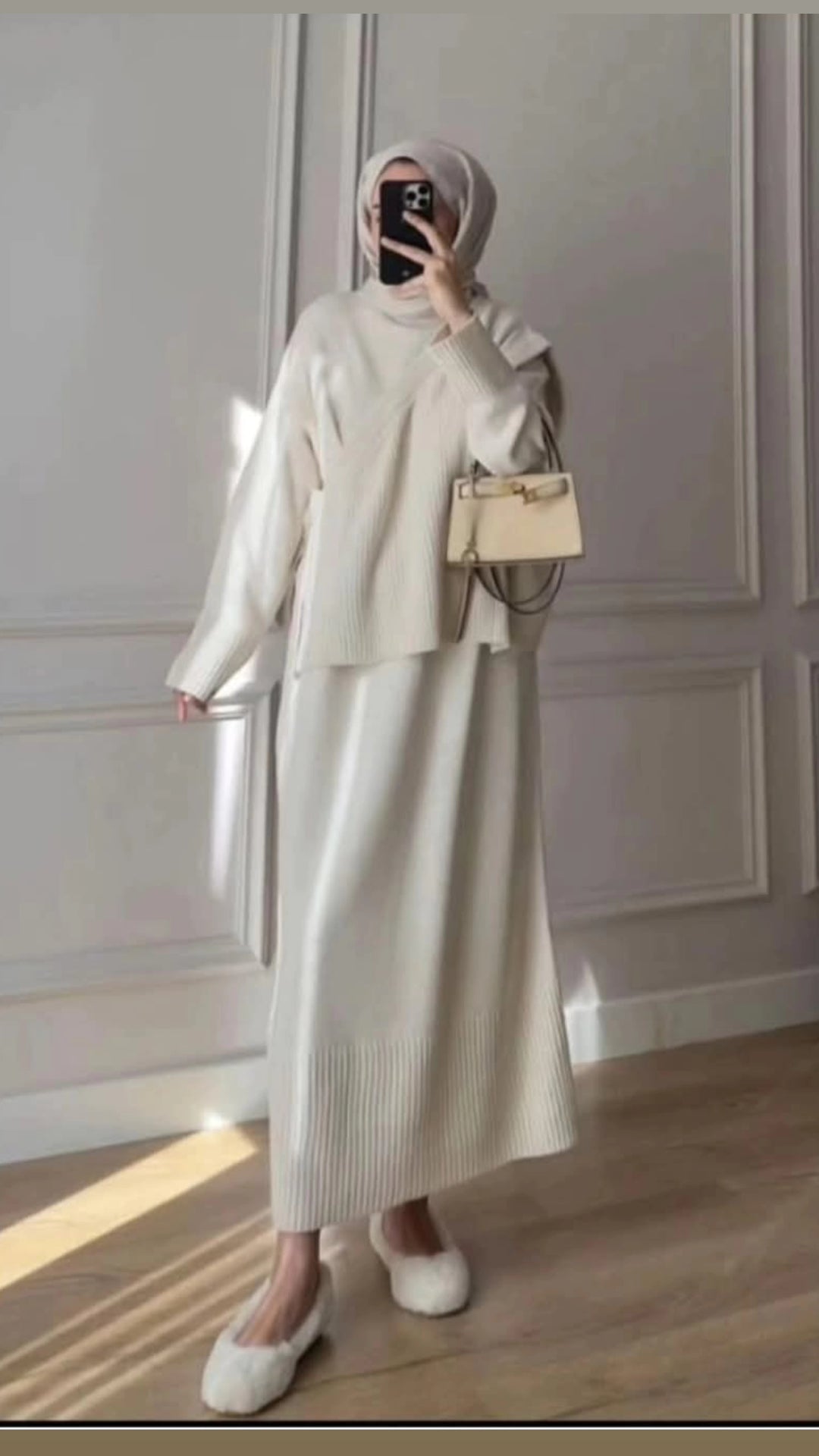 Yelekli triko elbise ekru