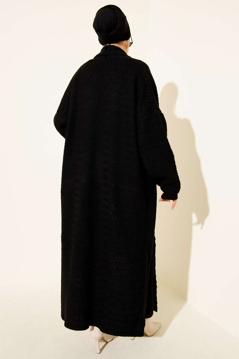 Zigzag Kabartmalı Triko Uzun Hırka siyah