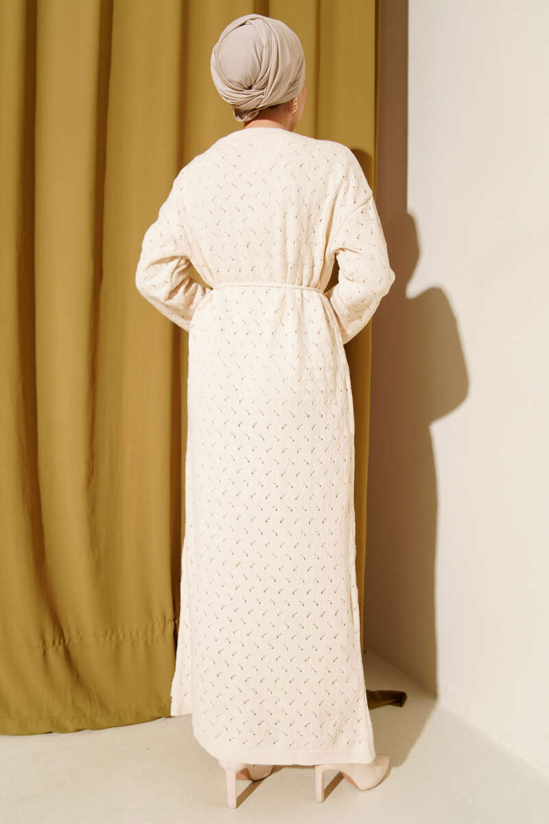 Ajurlu Triko Elbise ekru