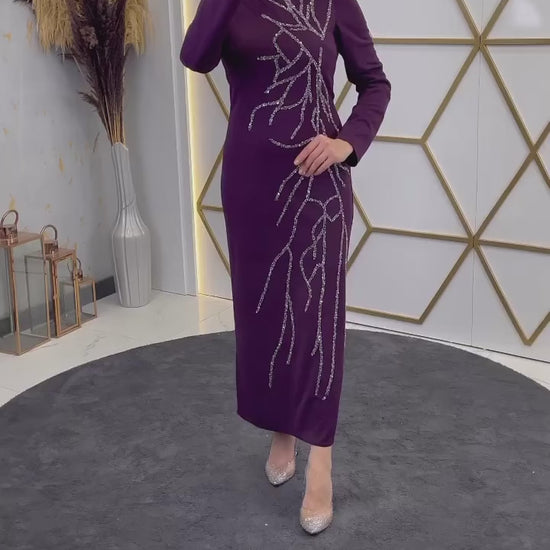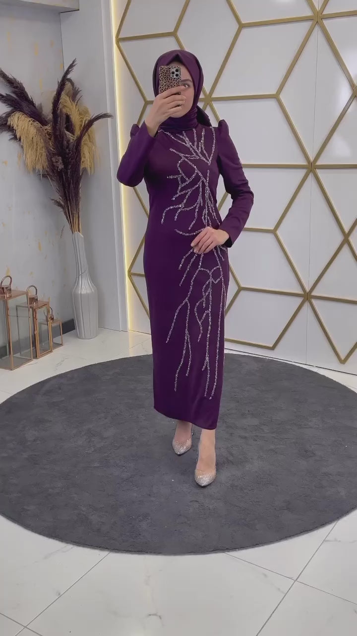 Aplik İşlemeli Kalem Abiye Mürdüm