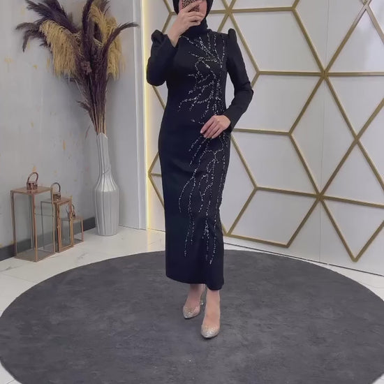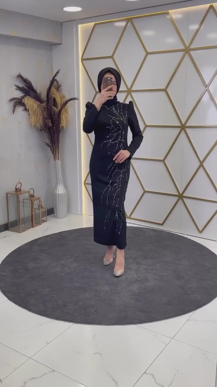 Aplik İşlemeli Kalem Abiye Siyah