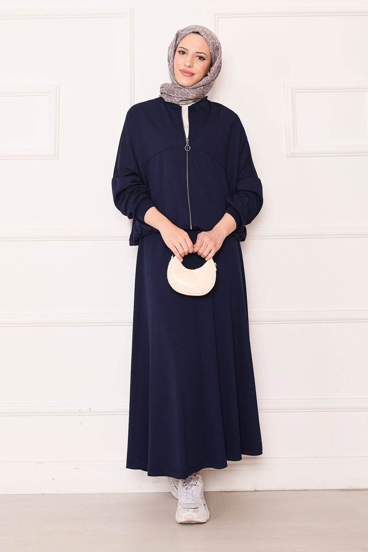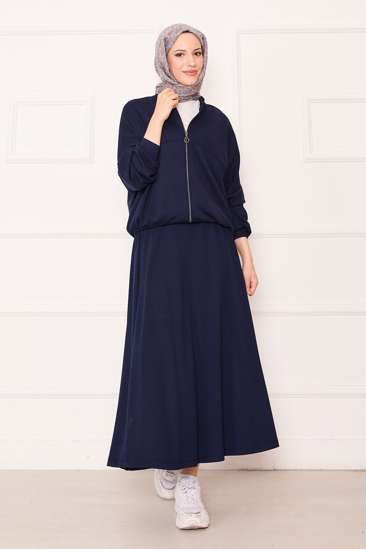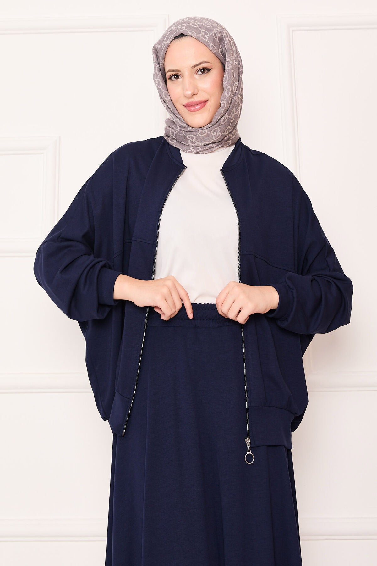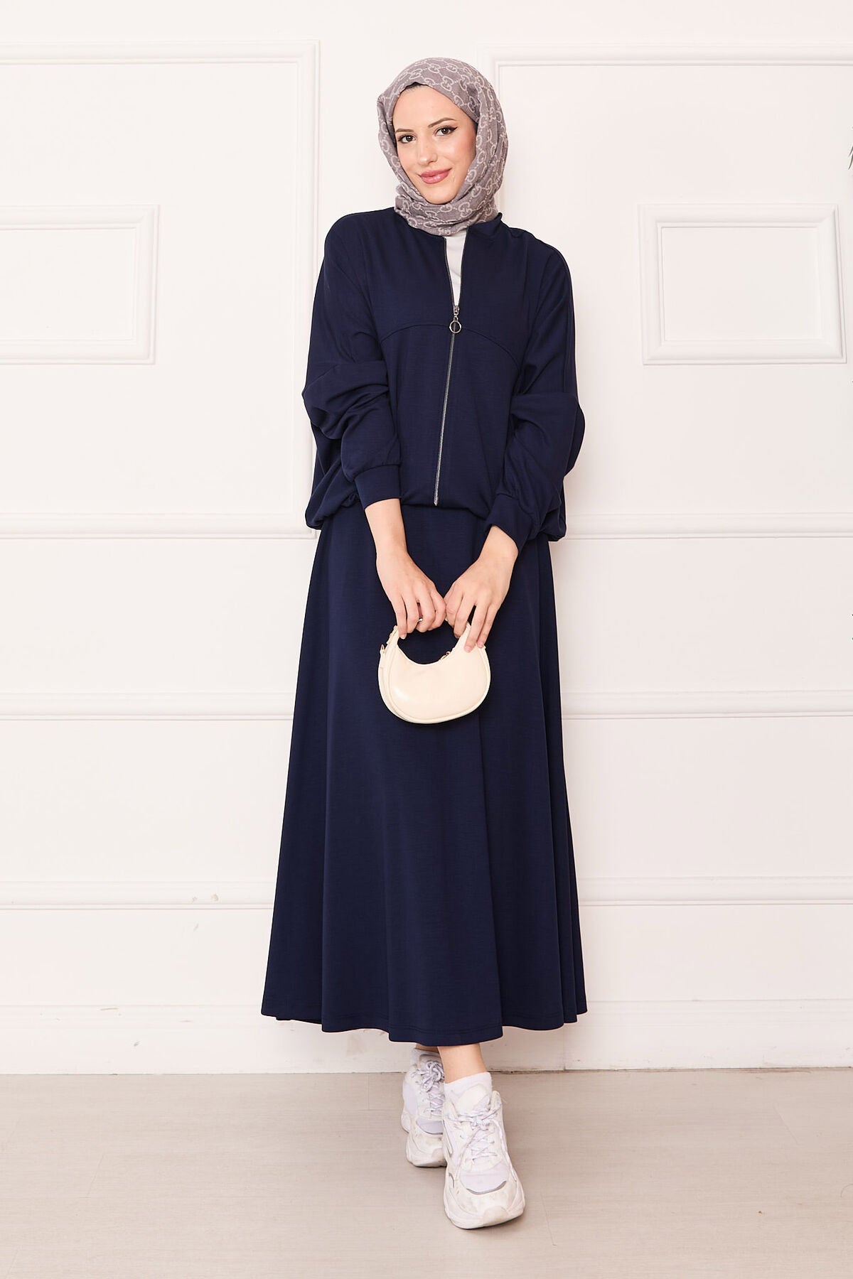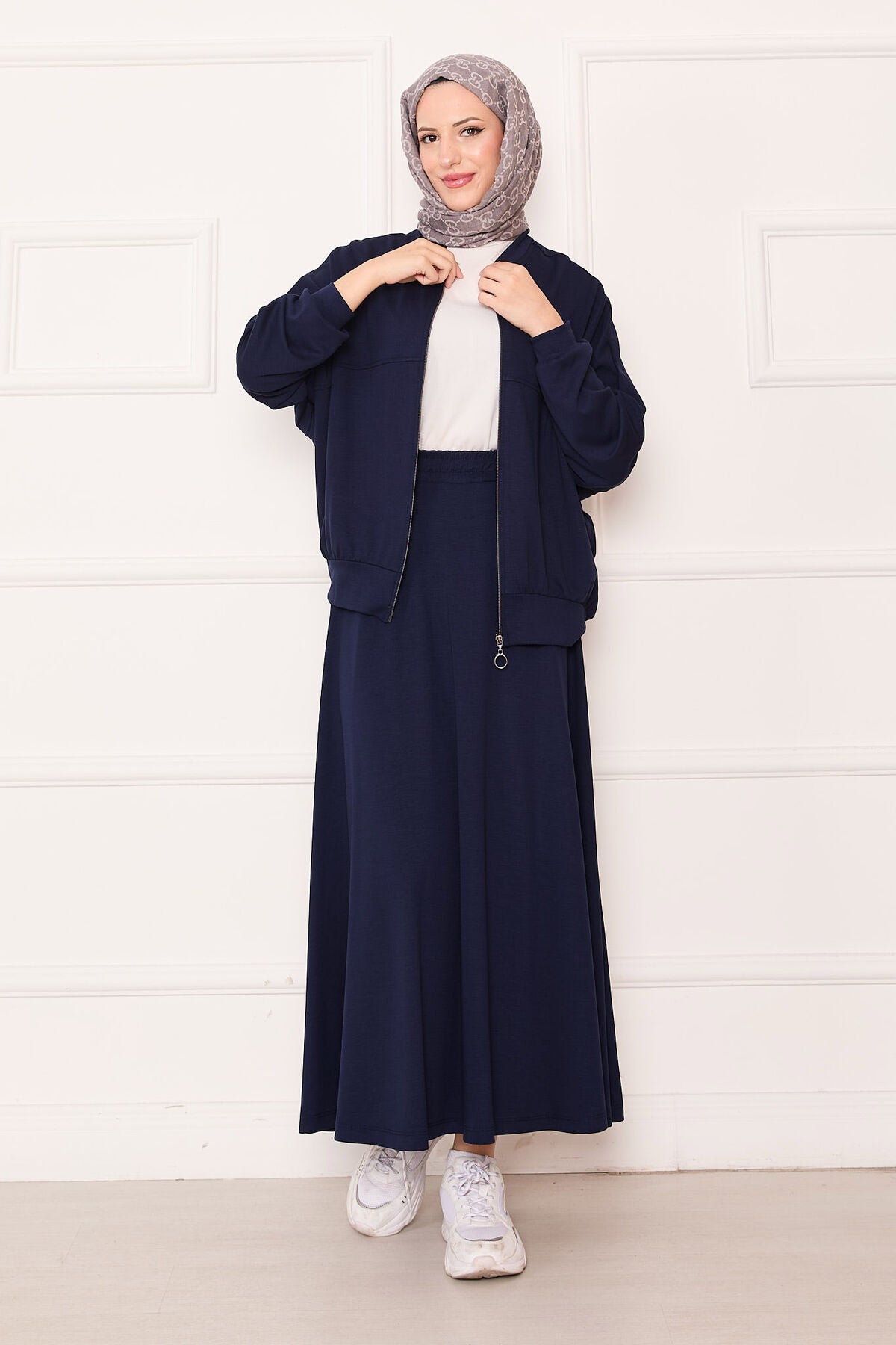 Ürün mevsimliktir. Yeni sezon bomber ceketli ve etekli ikili takım. Bomber ceket boydan fermuarlı salaş ve yarasa kol etek belden lastikli.