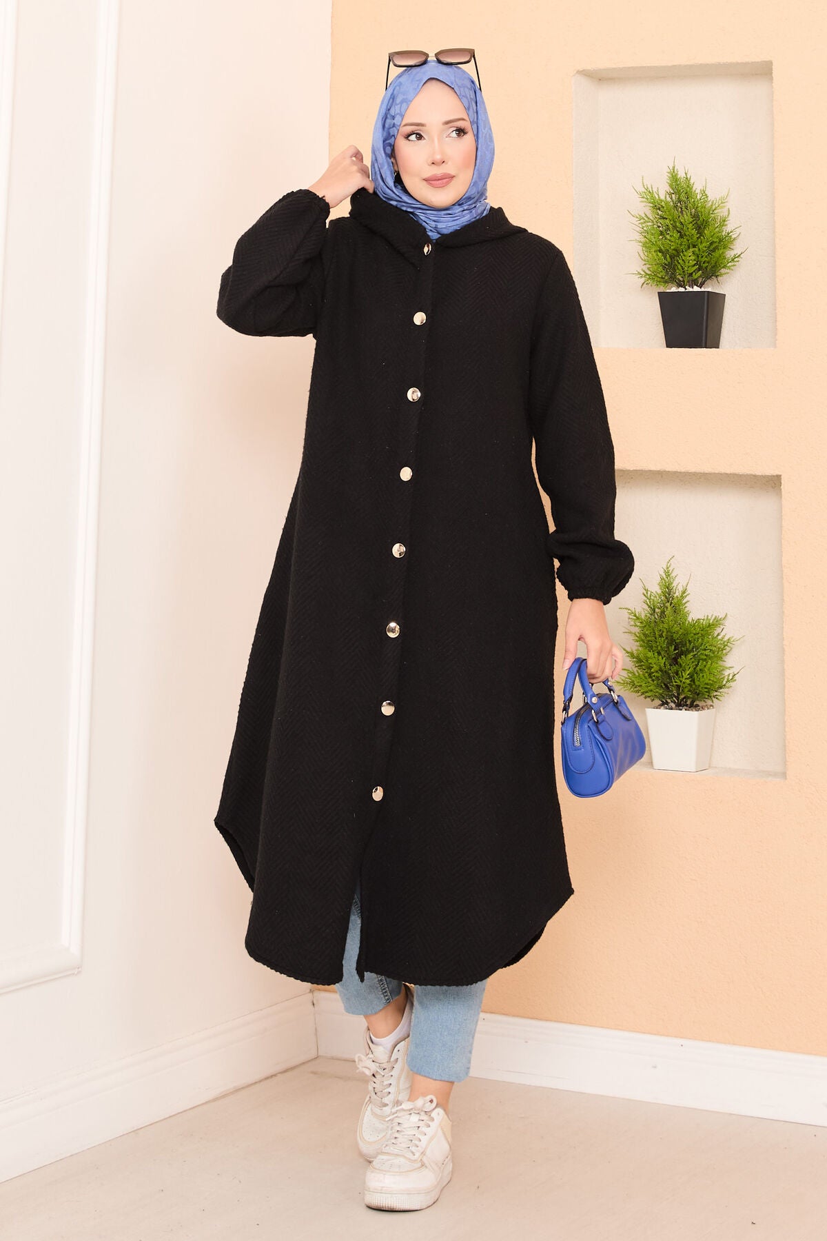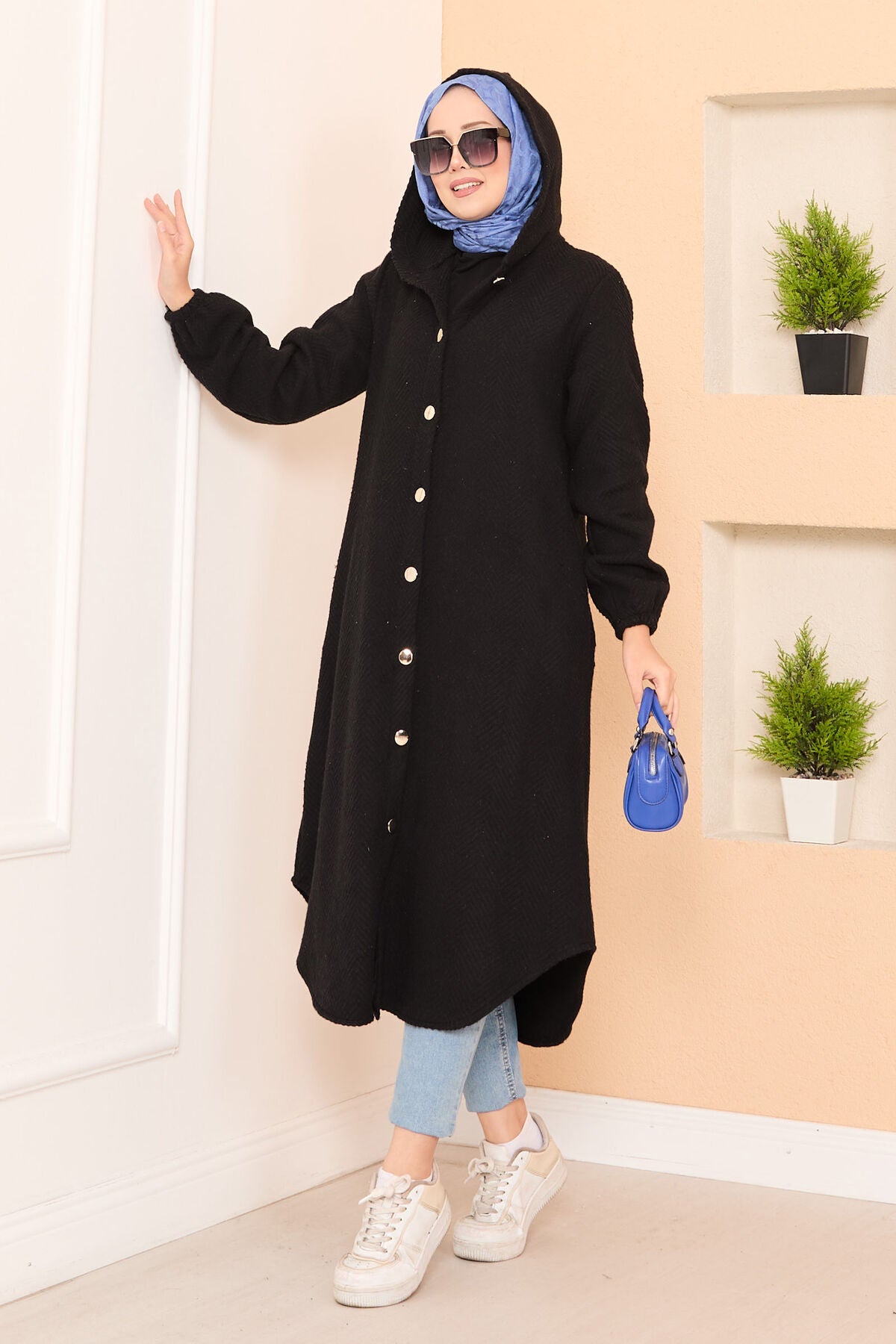 Kapüşon Detaylı ,Kaşe Kap siyah