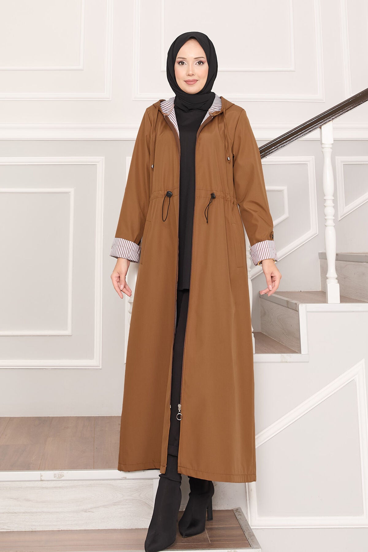 Ürün dört mevsimliktir.Ürün. boydan fermuarlı,beli ayarlanabilir. Kol manşetleri katlanabilir ve çıtçıtlıdır. Sağ ve sol olmak üzeri çift yan ceplidir. Rahat kalıp ve kapüşonludur. Ürnün içerden çizgili desenlidir.