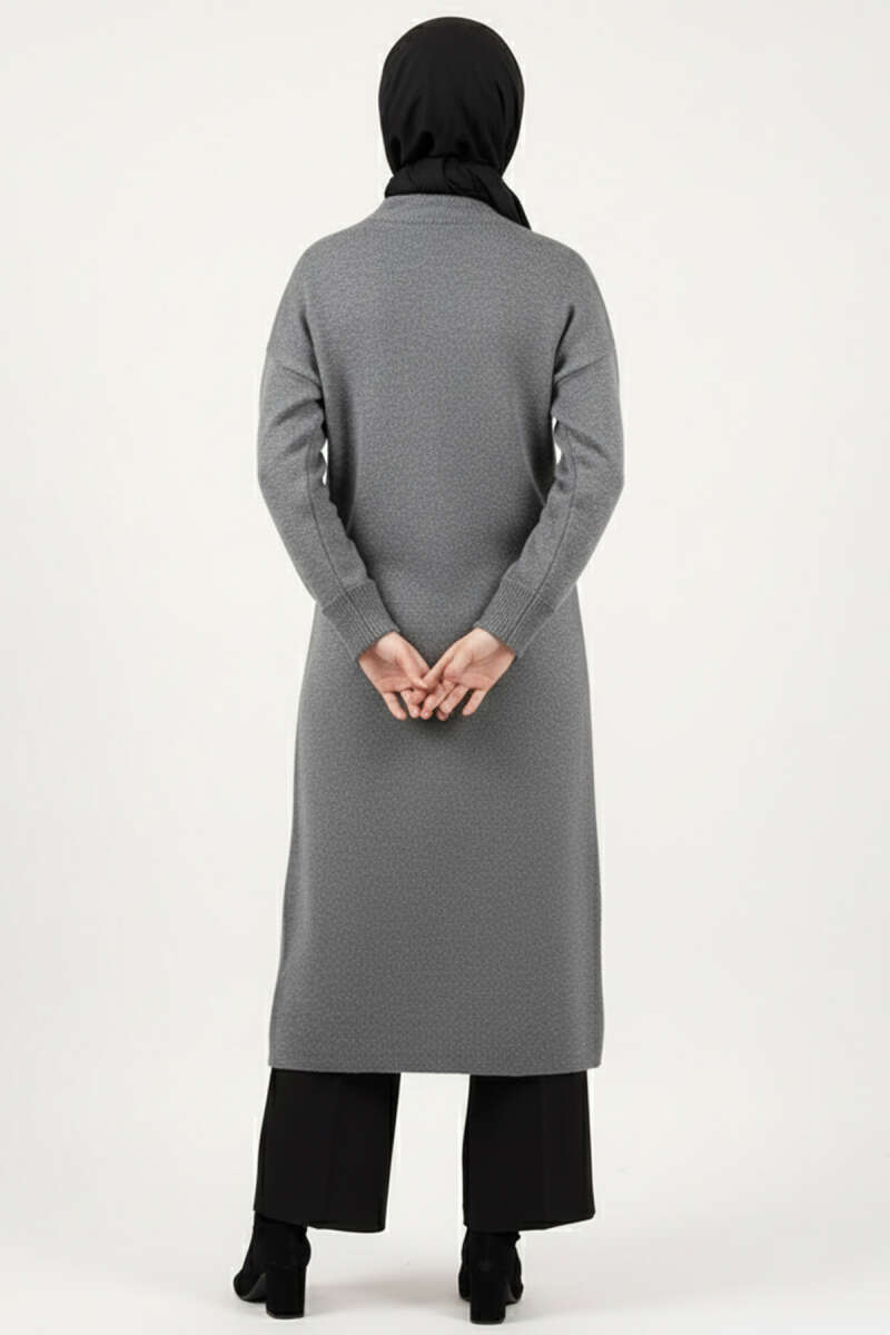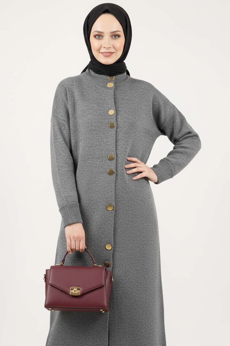 Metal Gold Düğmeli Uzun Triko Hırka gri