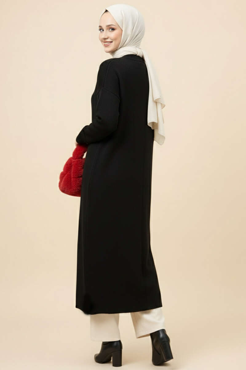 Metal Gold Düğmeli Uzun Triko Hırka siyah