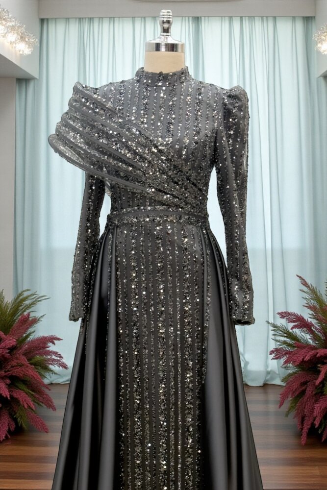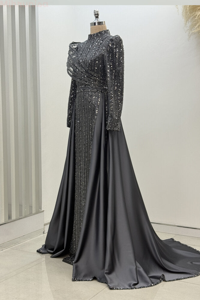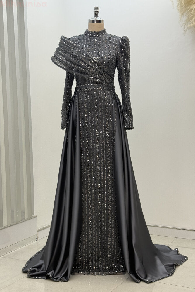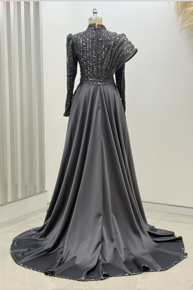 omuz detaylı özel işleme boncuk ve pul desen elegance abiye modelimiz kuyruklu olup arkadan gizli fermuarlıdır.
