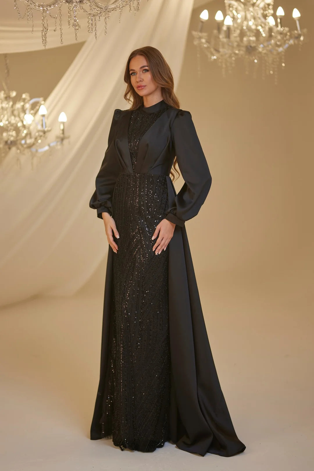 Özel tasarım Kuyruklu Saten Abiye siyah