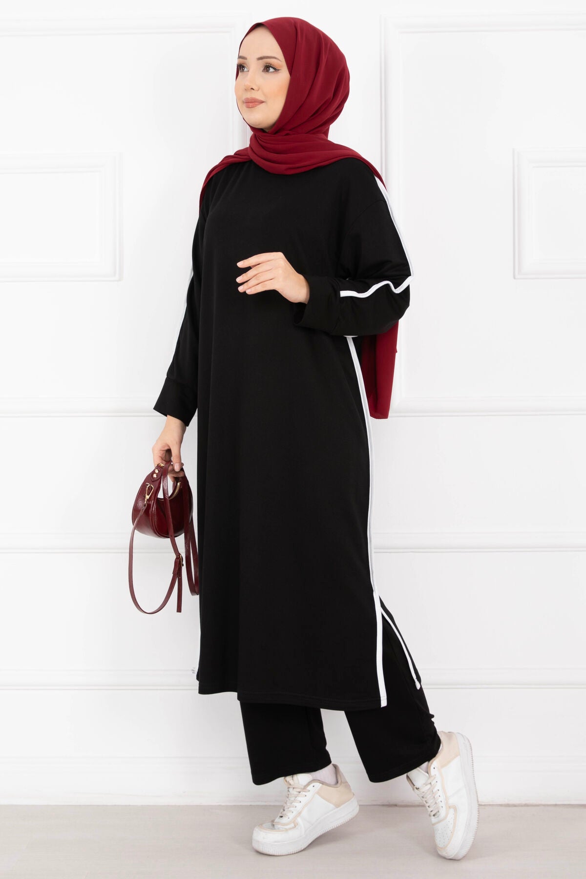 Şık ve konforlu yapısıyla öne çıkan sportif tesettür takım, modern çizgileri ve biye detaylarıyla günlük stile uyum sağlar.
