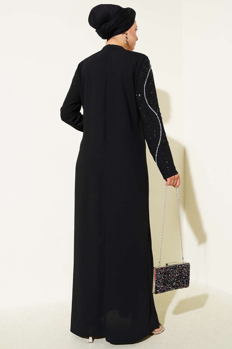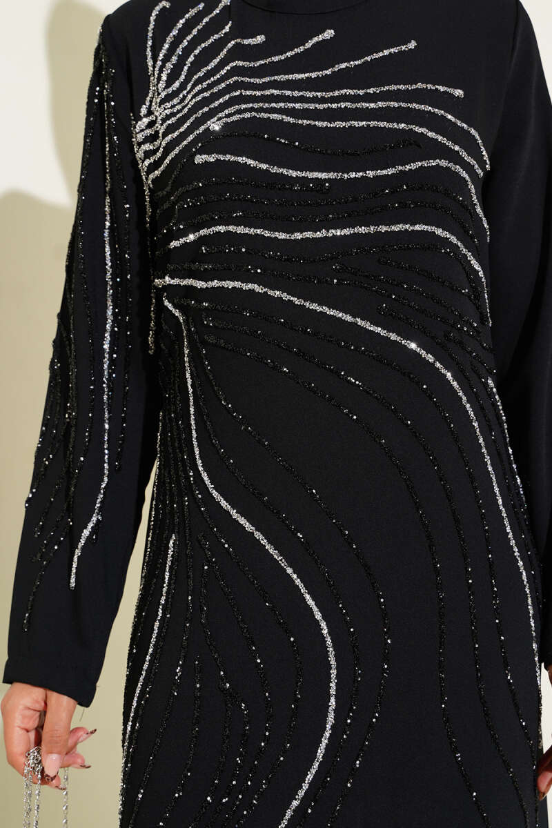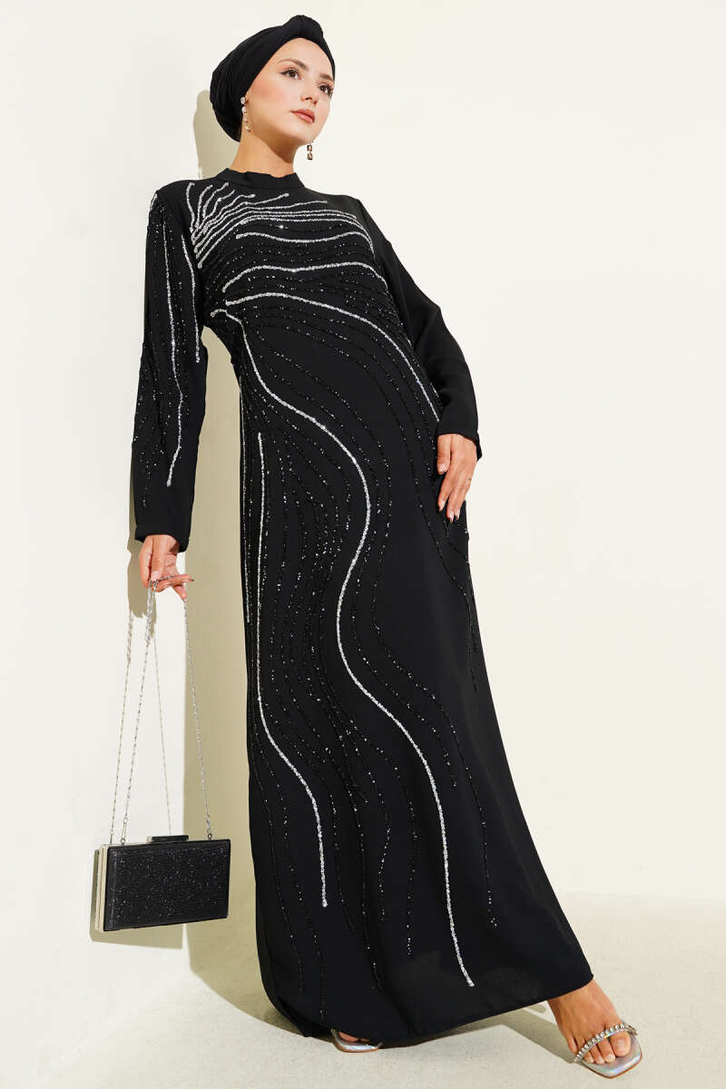 Taş Süs Detaylı Abiye Elbise Siyah