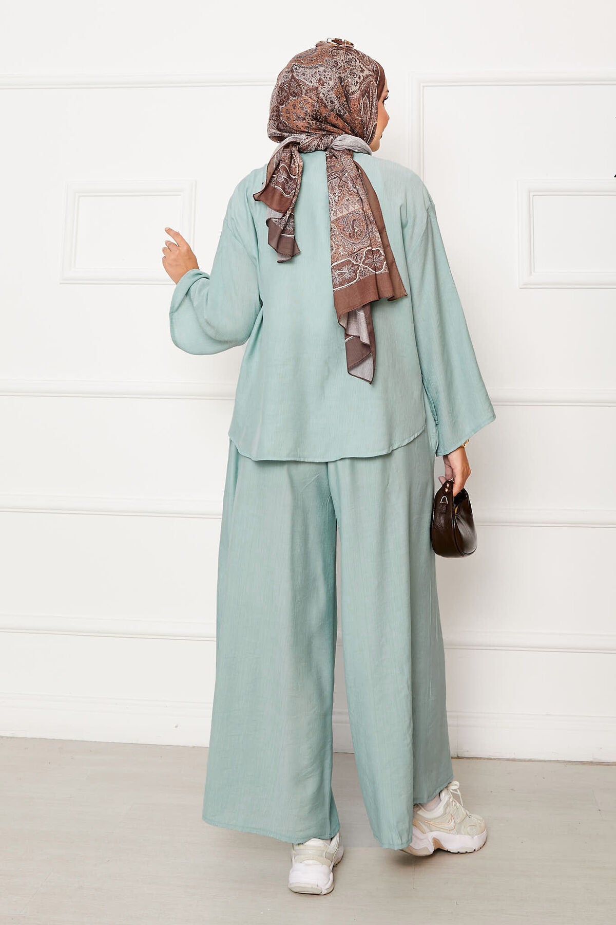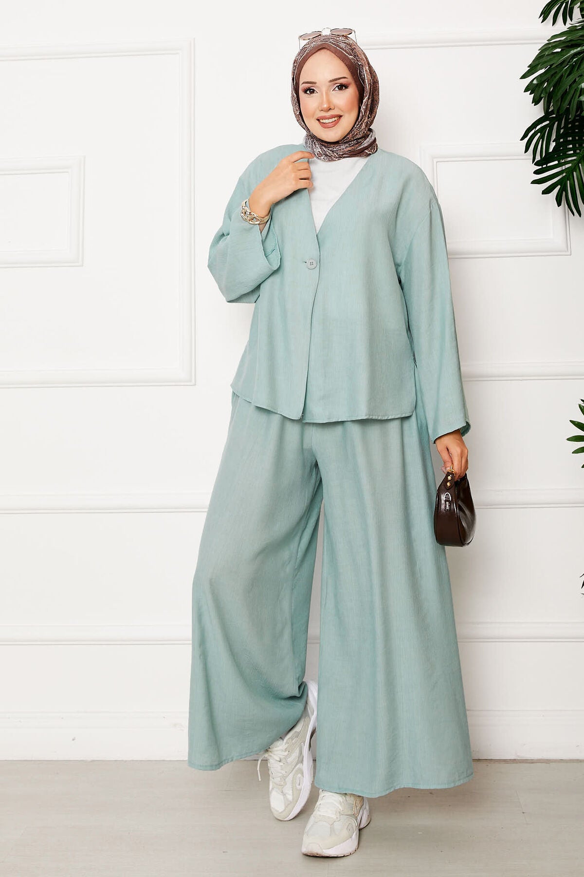 Tek Düğme Detaylı Salaş İkili Takım mint