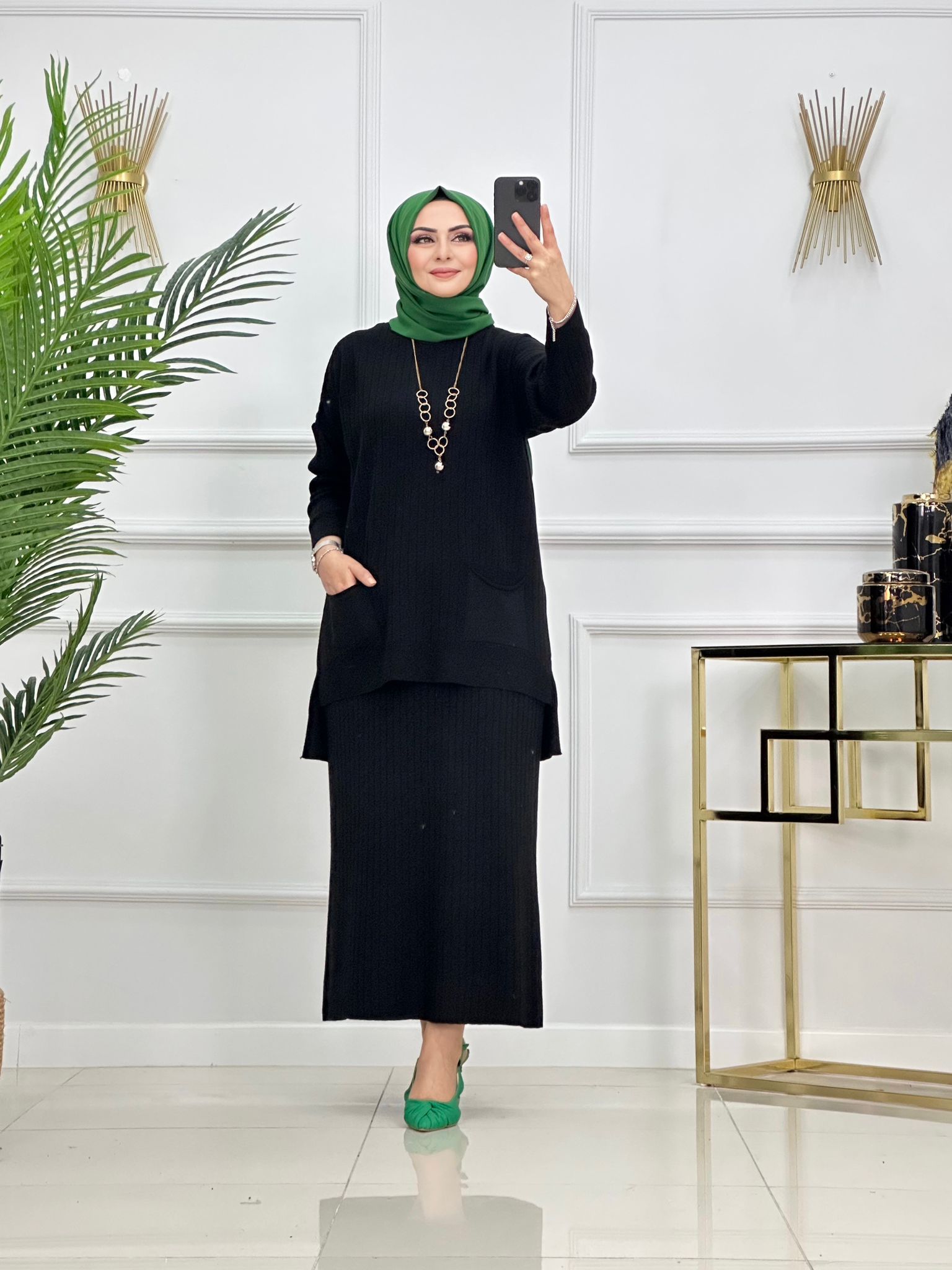 Triko etekli ikili takım siyah