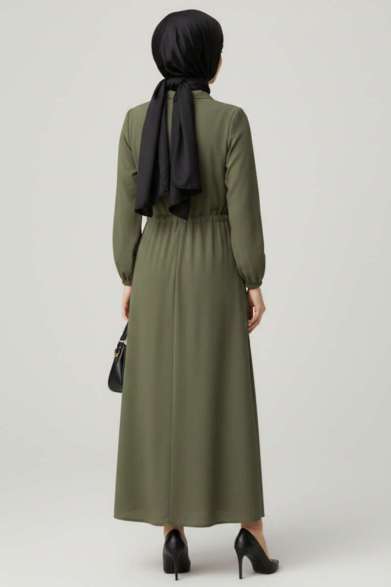Yaka Fırfırlı Bel Tünelli Elbise haki